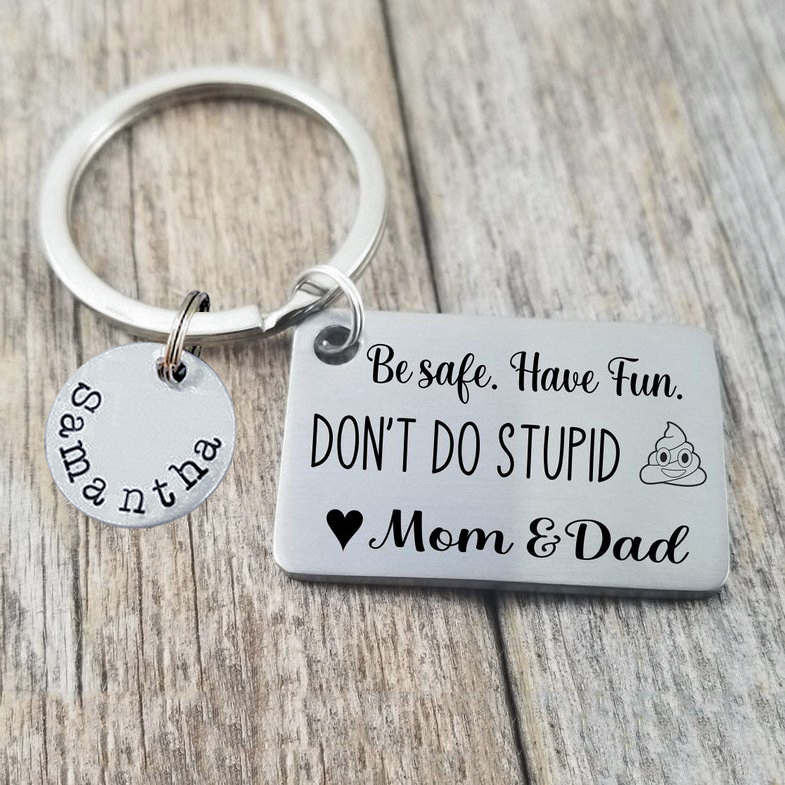 Don't Do Stupid Funny Keychain Custom Name Keyring Drive Safe Have Fun Keychain Gift For Son/Daughter