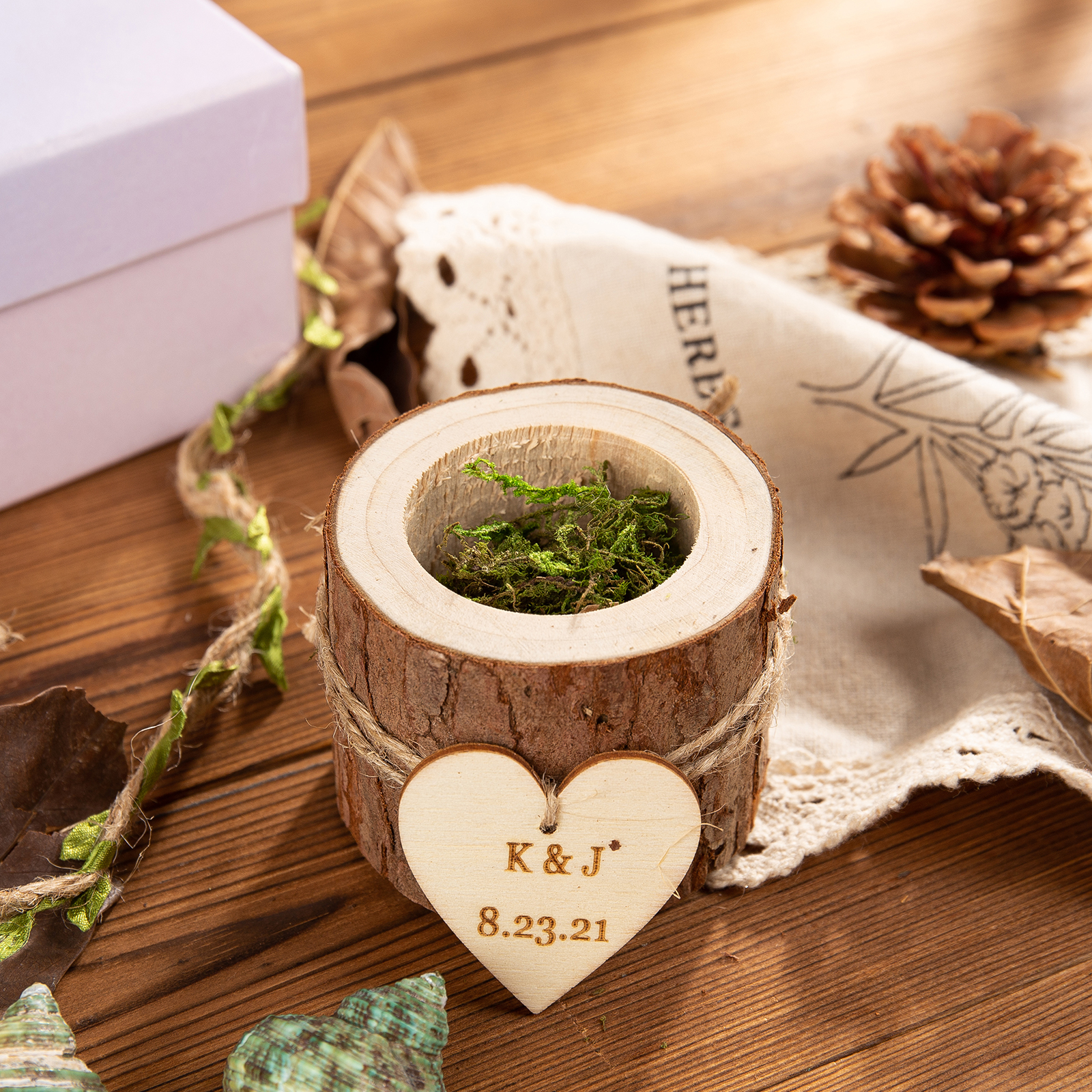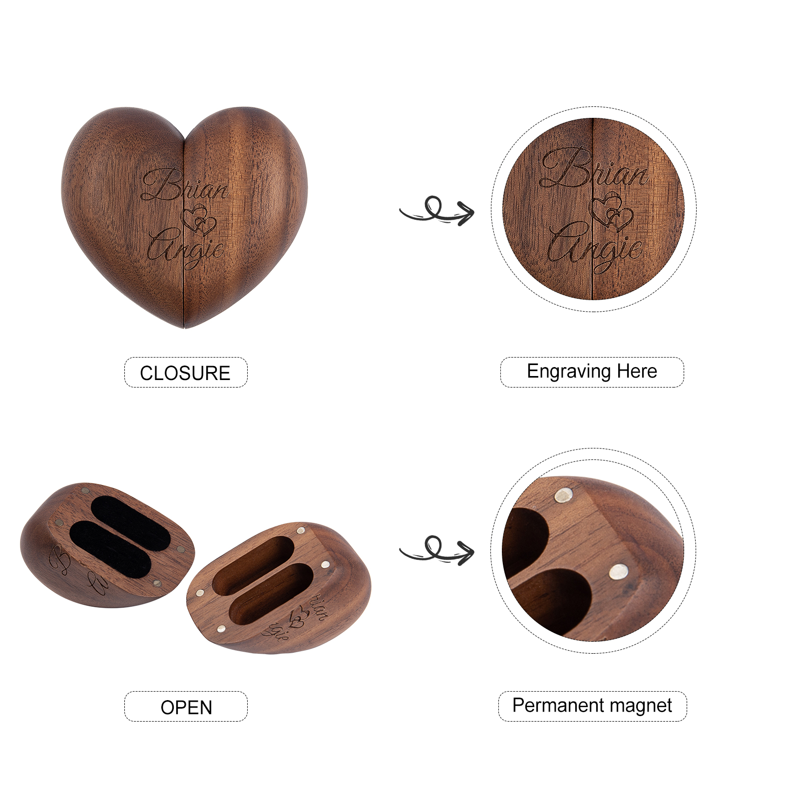 Heart-shaped Ring Box Personalized 2 Names Solid Wood Ring Box for Proposal