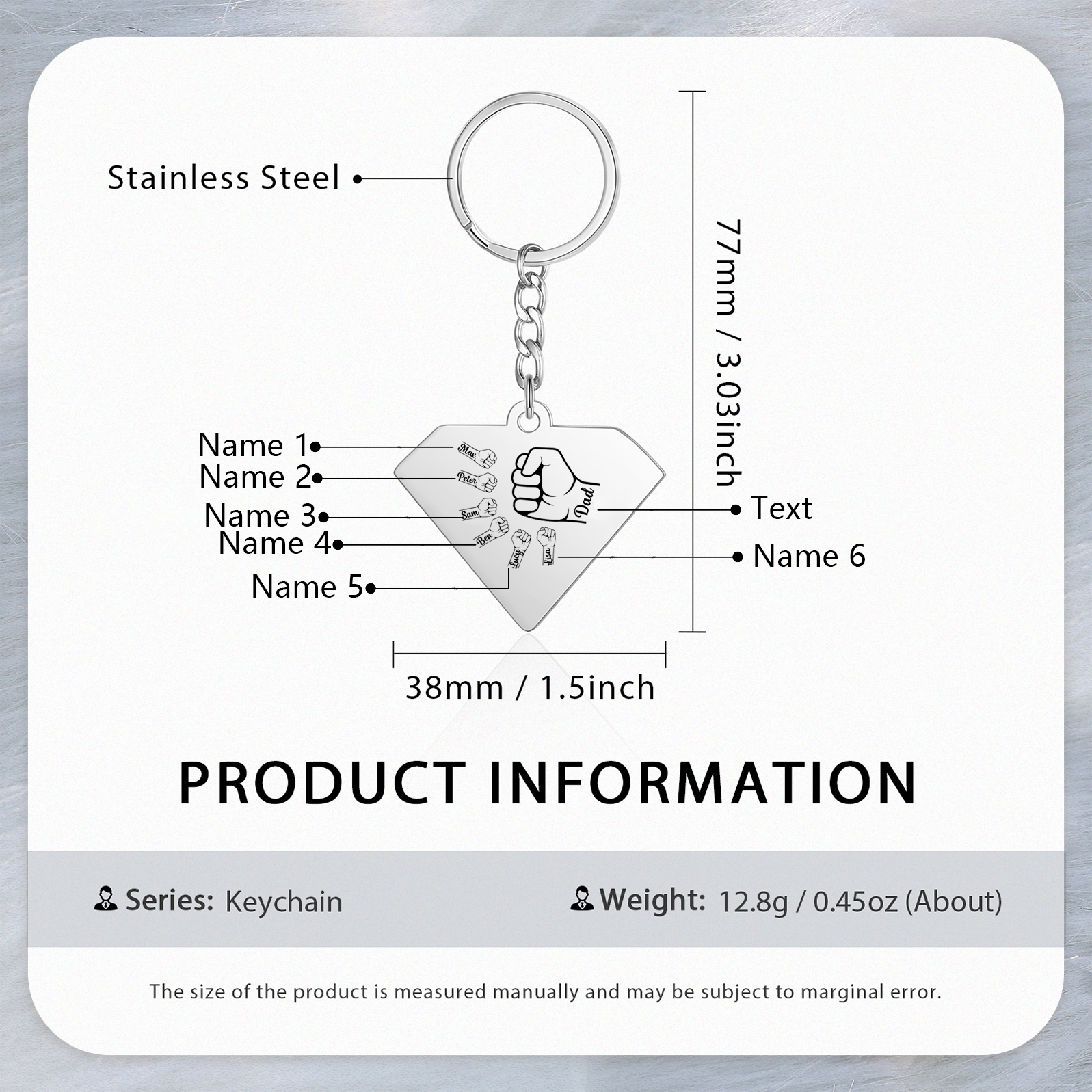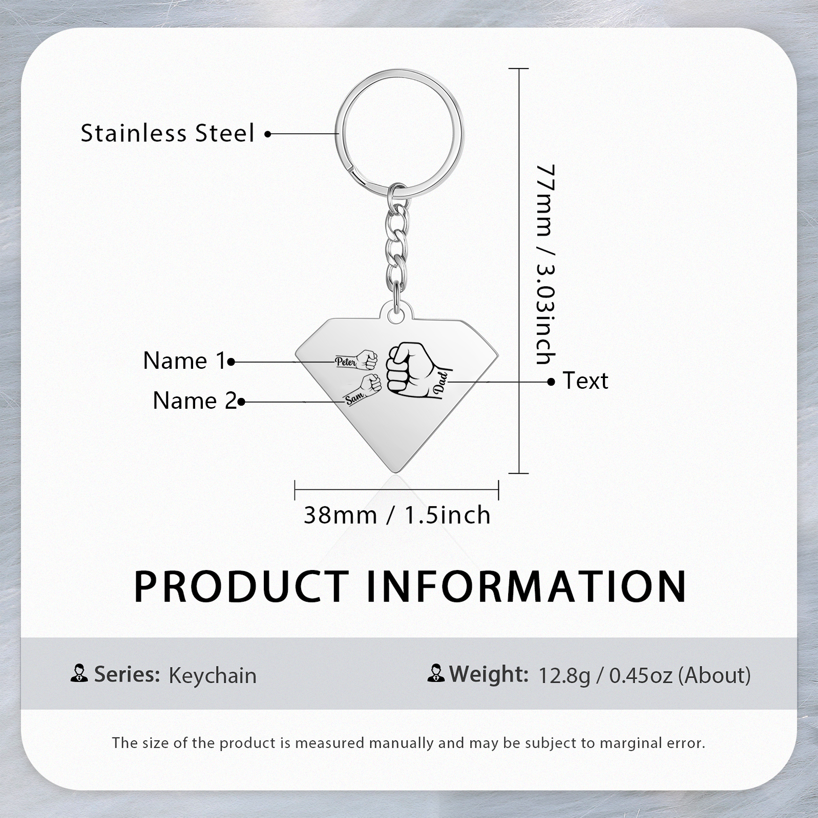 Personalized 1 Name & 1 Text Fist Bump Keychain Engraved Kids Names Keychain Gifts for Grandpa/Dad