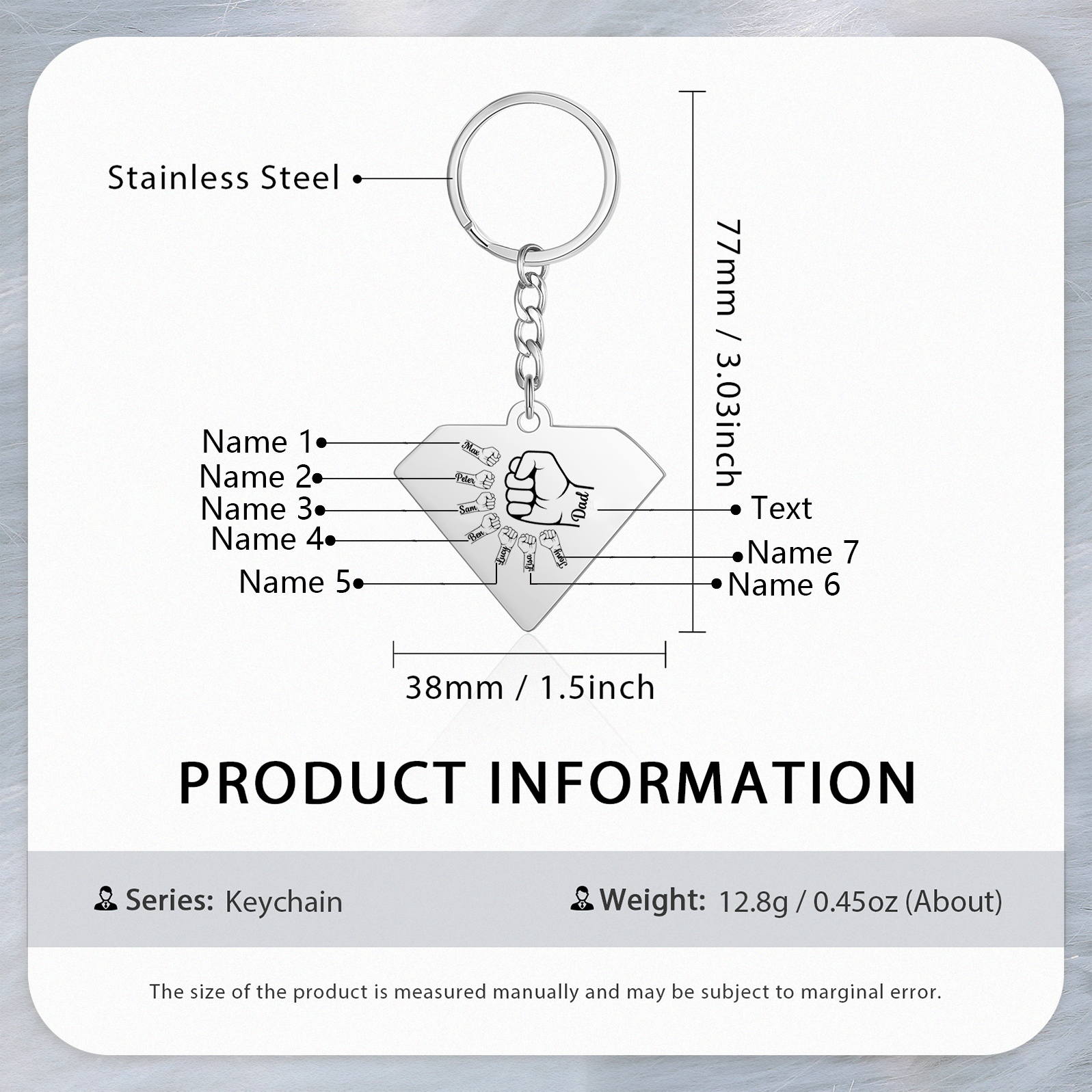 Personalized 7 Names & 1 Text Fist Bump Keychain Engraved Kids Names Keychain Gifts for Grandpa/Dad