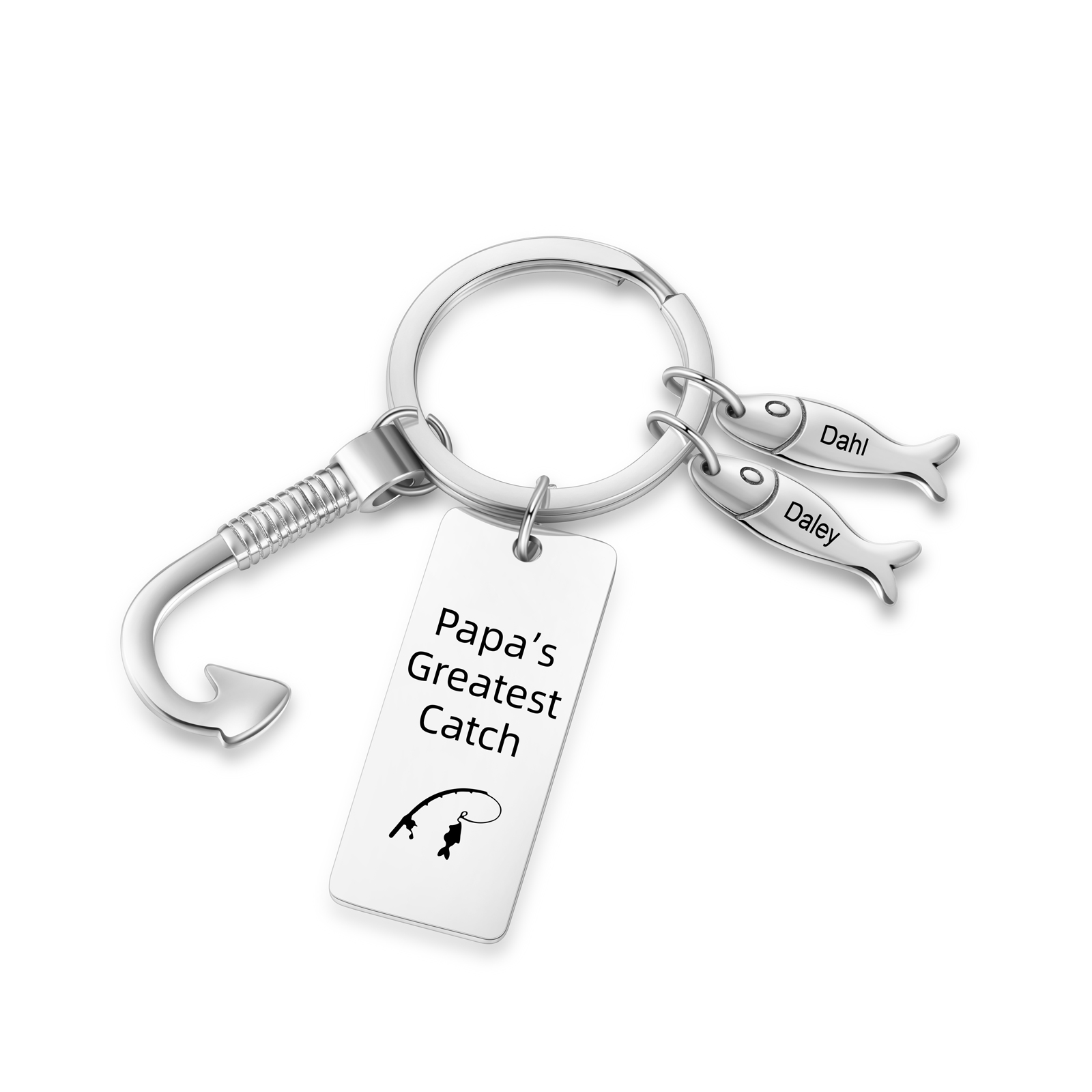 Personalized Fishing Hook Keychain Engraved 5 Names Unique Gift for Him