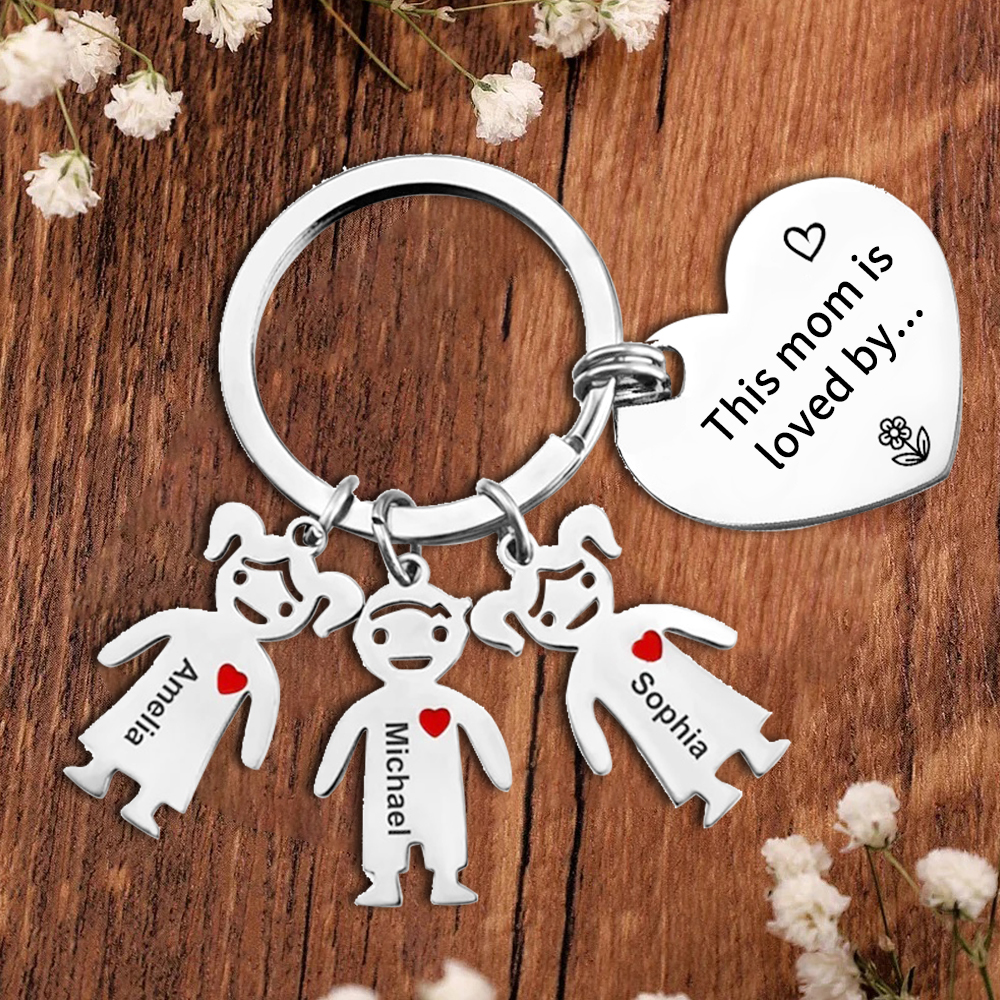 3 Names - Personalized Keychain with Kid Charm Engraved Names Keychain Mother's Day Gift for Mom/Mum