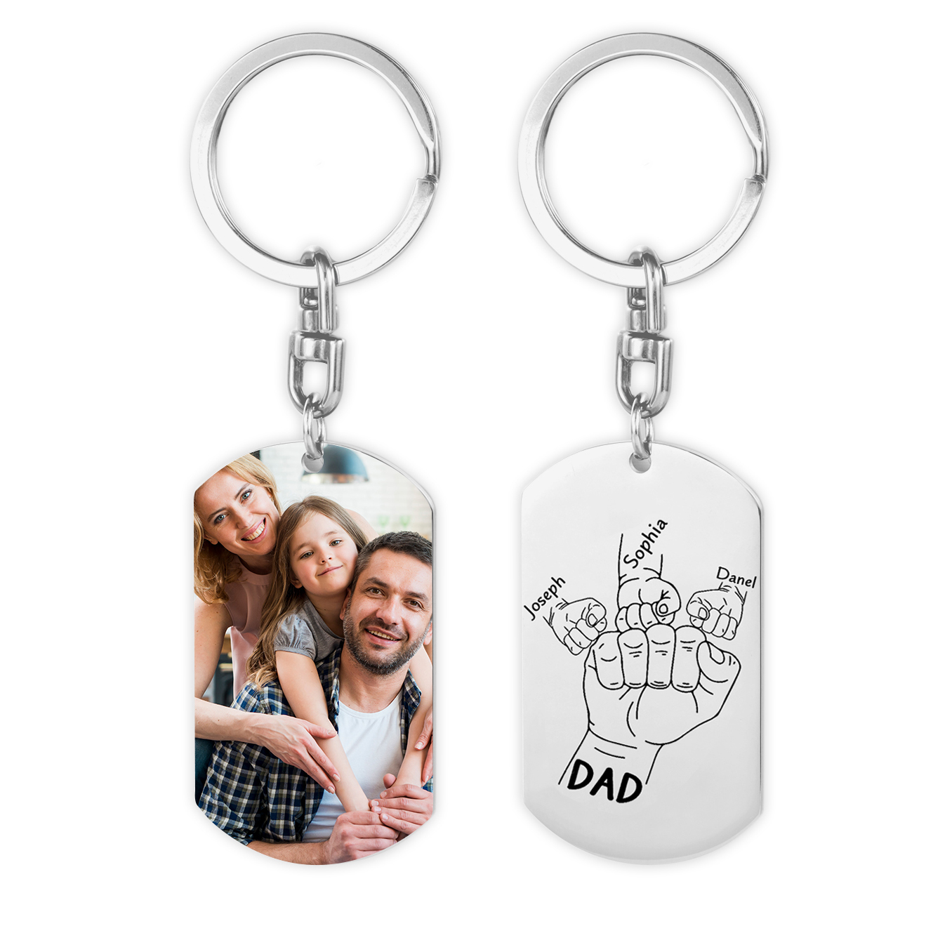 Personalized Photo Keychain Engraved 3 Names Fist Family Keychain for Dad