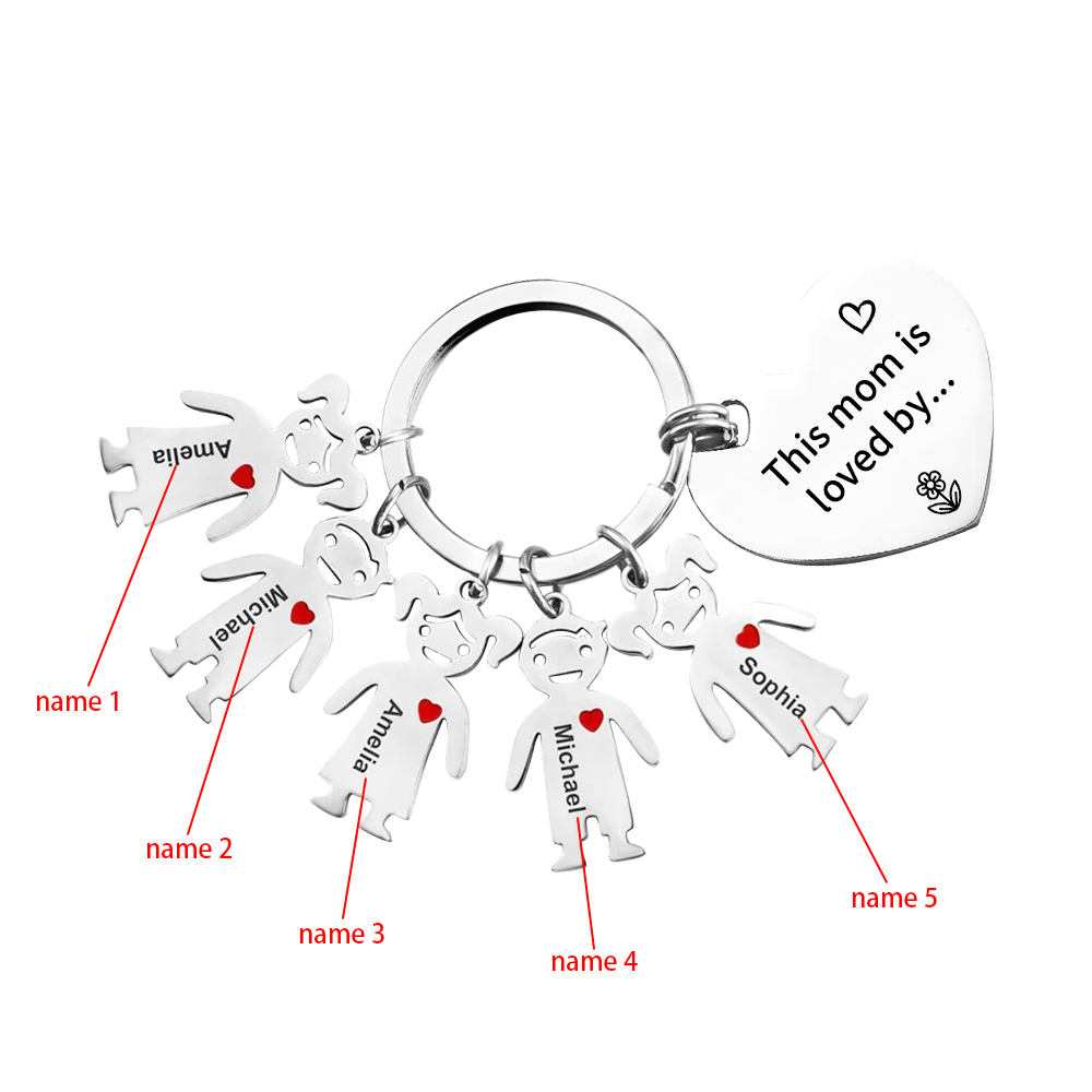 5 Names - Personalized Keychain with Kid Charm Engraved Names Keychain Mother's Day Gift for Mom/Mum