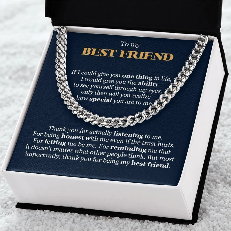 To My Best Friend Cuban Chain Necklace Stainless Steel Necklace Set Gift "thank you for being my best friend"