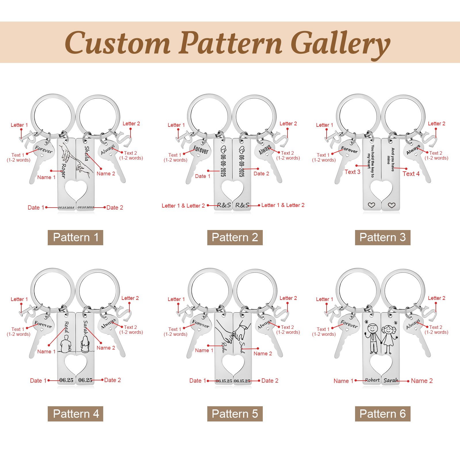 Custom Heart Cutout Couple Keychain Set, Name and Date Engraved