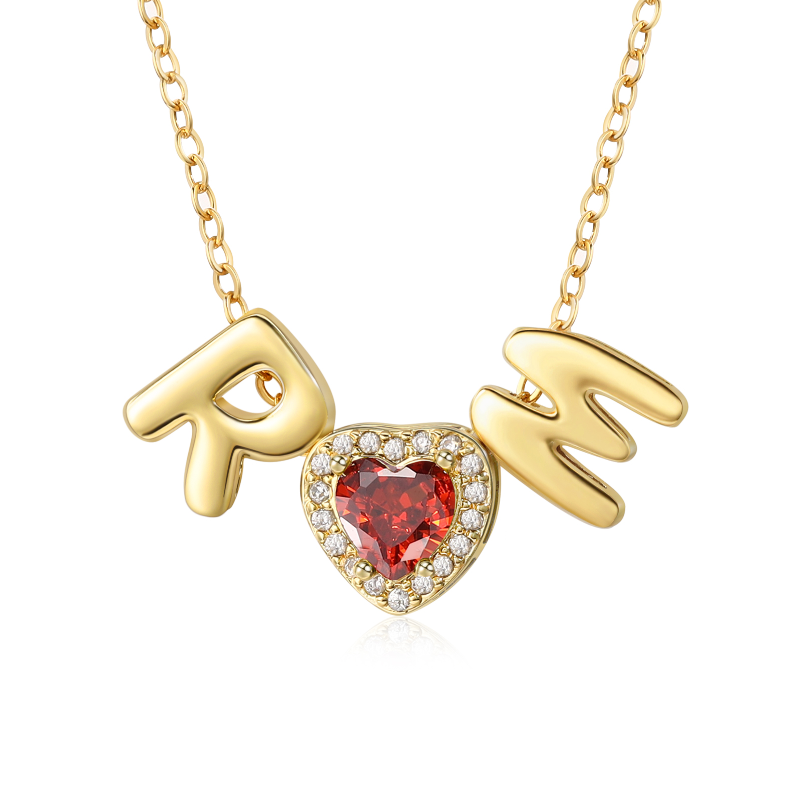 Personalized Gold Initial Necklace with Custom Heart Birthstone
