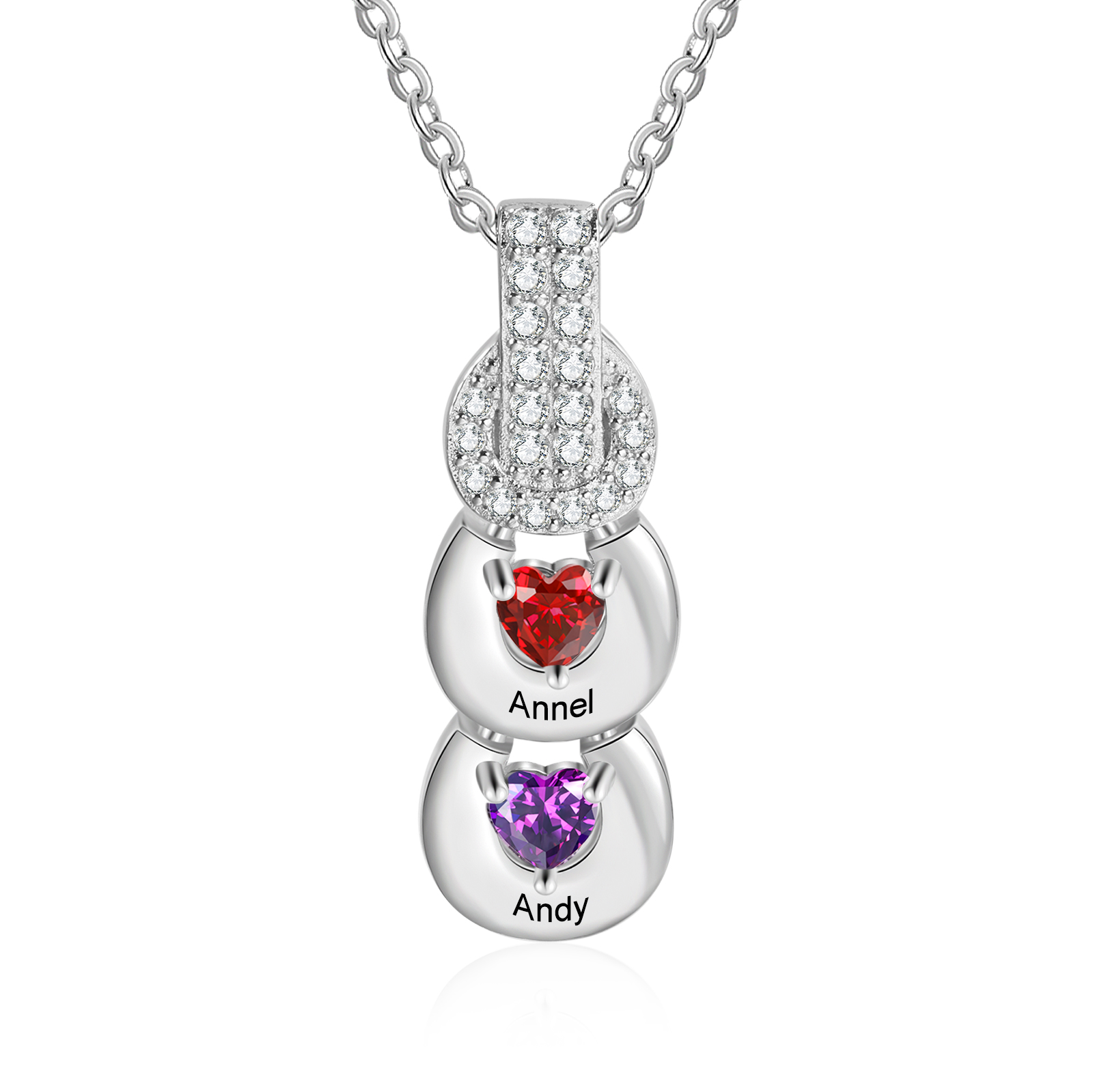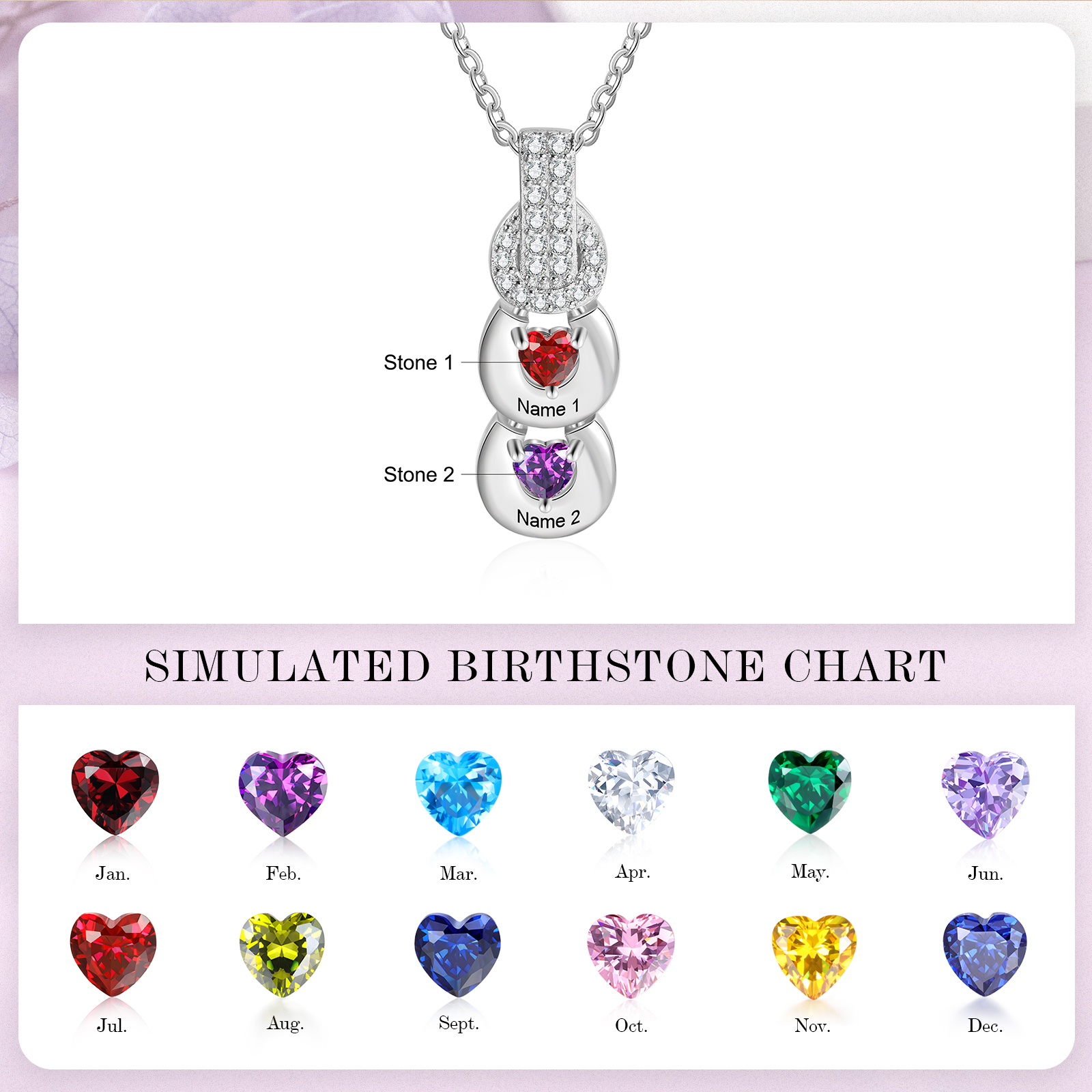 Personalized Heart Pendant Necklace with 2 Birthstones Custom 2 Names Family Necklace