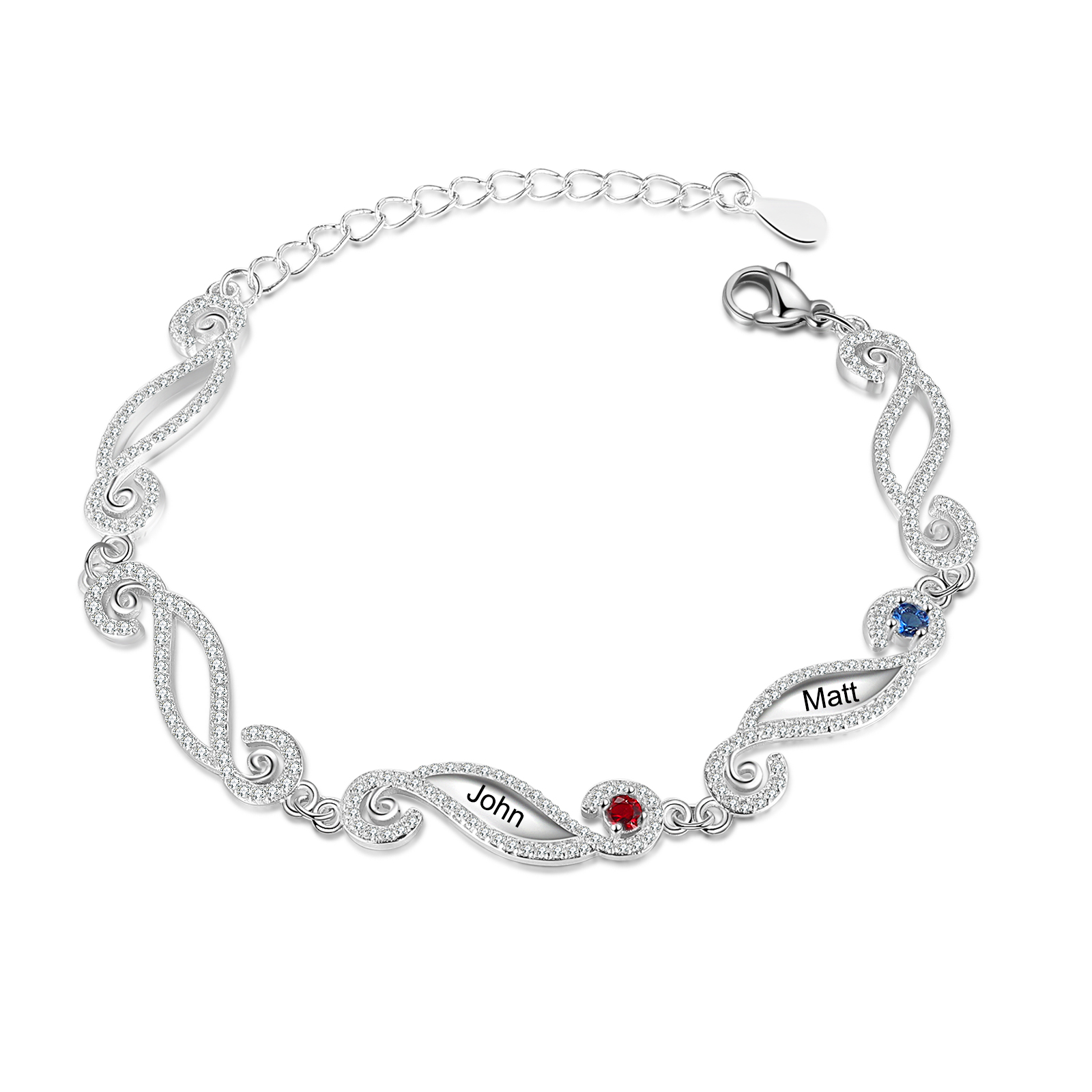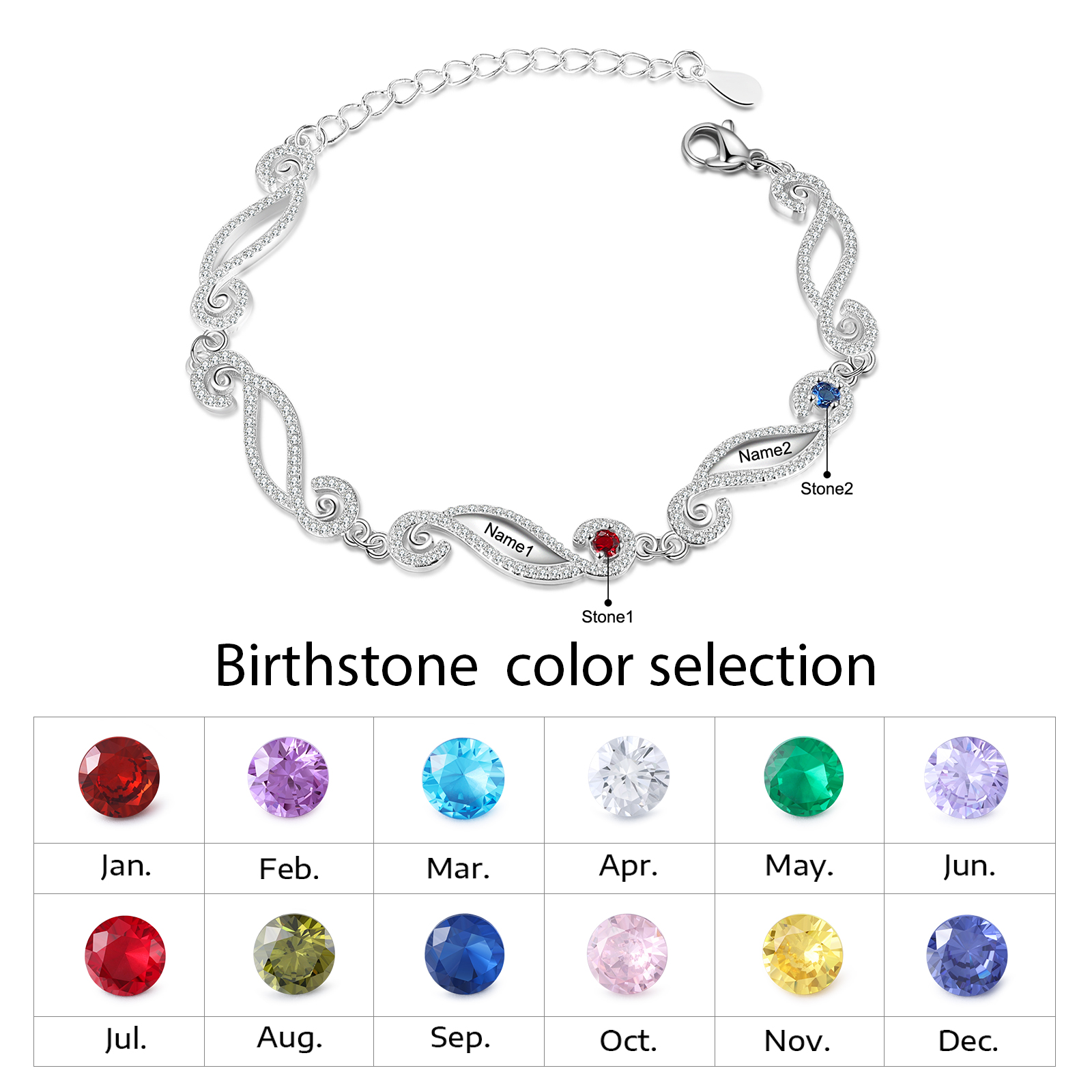 Personalized Birthstone Bracelet Engrave 2 Names Family Bracelet Gifts For Her
