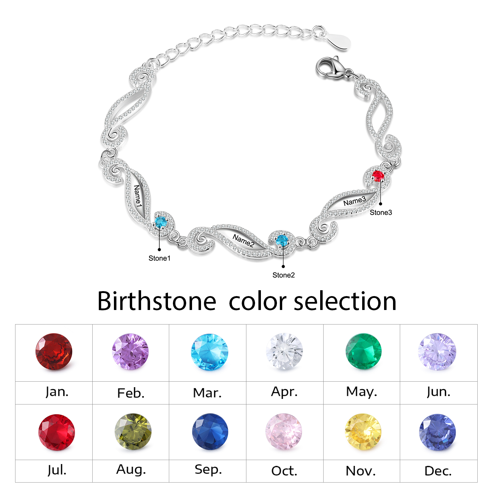 Personalized Birthstone Bracelet Engrave 3 Names Family Bracelet Gifts For Her