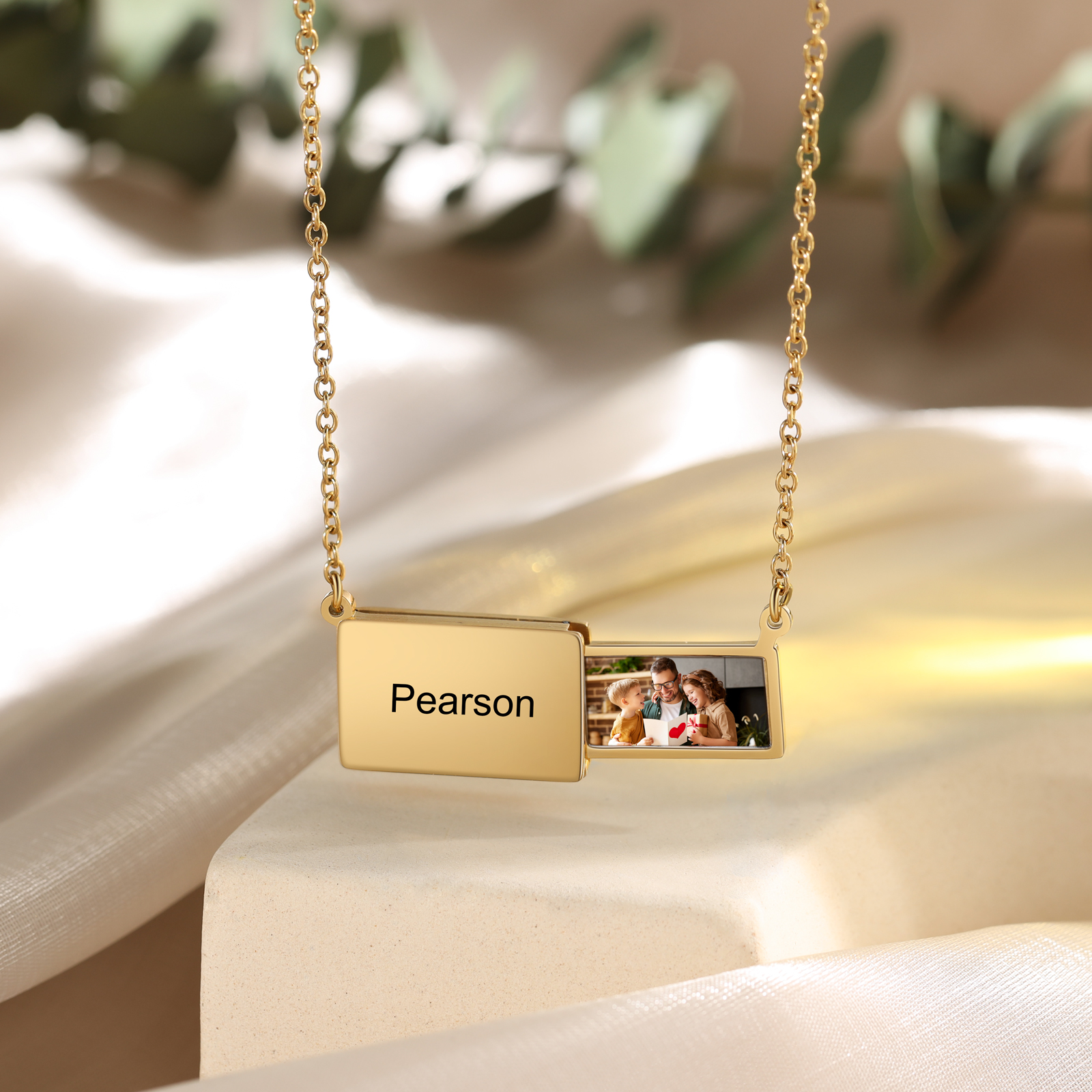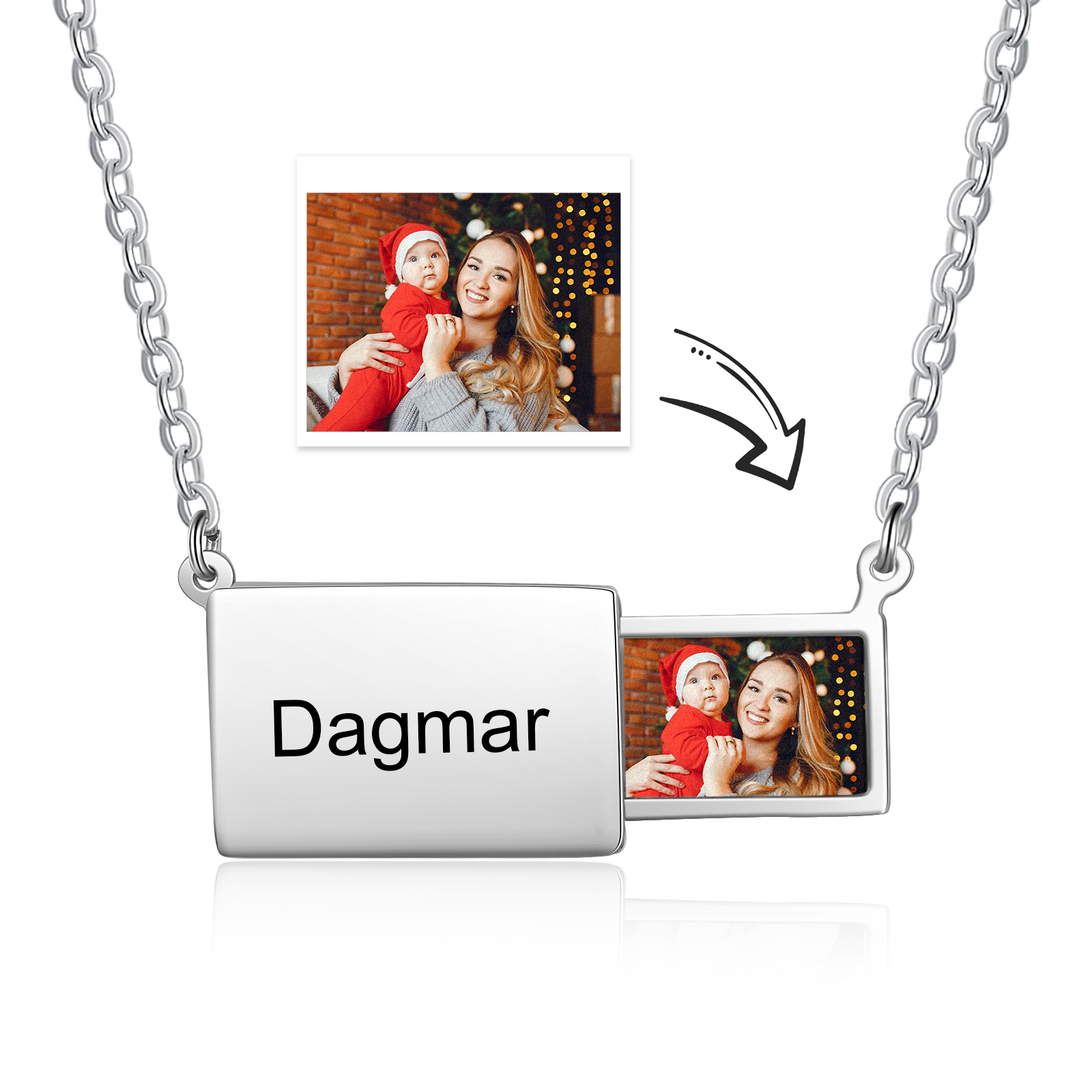 Personalized Photo Envelope Necklace with Engraving Name Gift for Her
