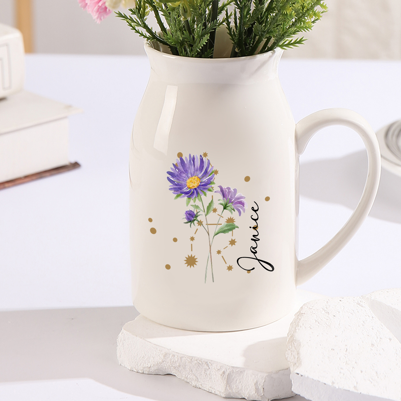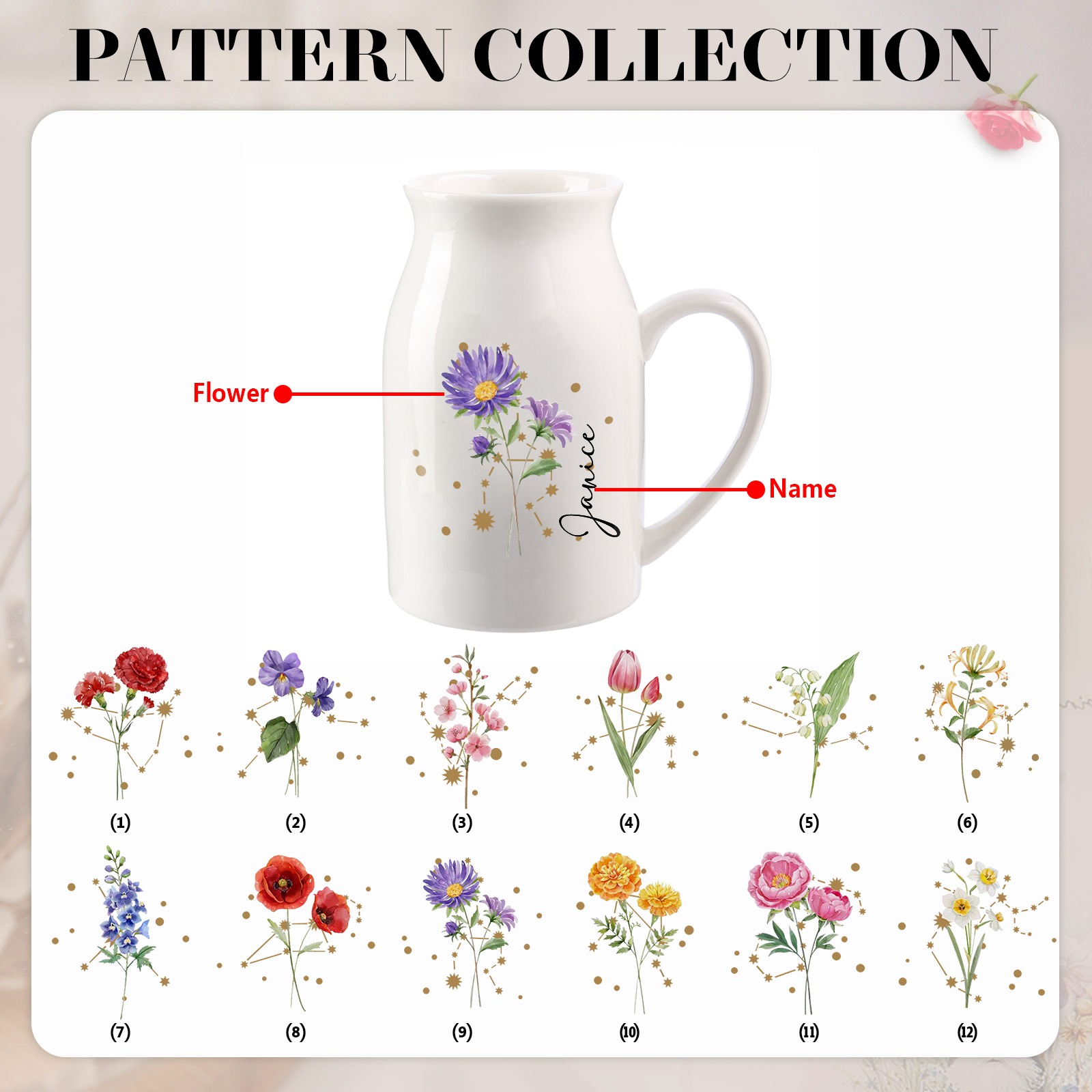 Personalized Birth Flower Botanical Ceramic Vase