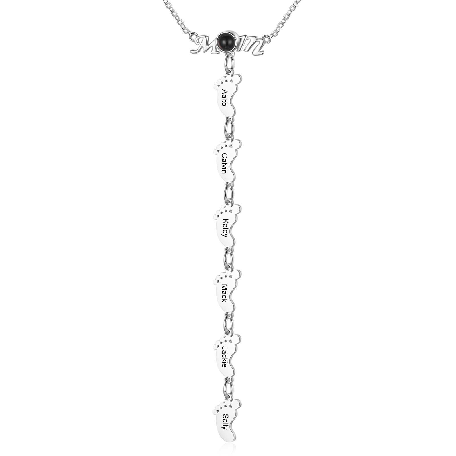 Mother Baby Feet Projection Necklace Engrave 6 Names Personalized Photo Necklace Creative Gifts
