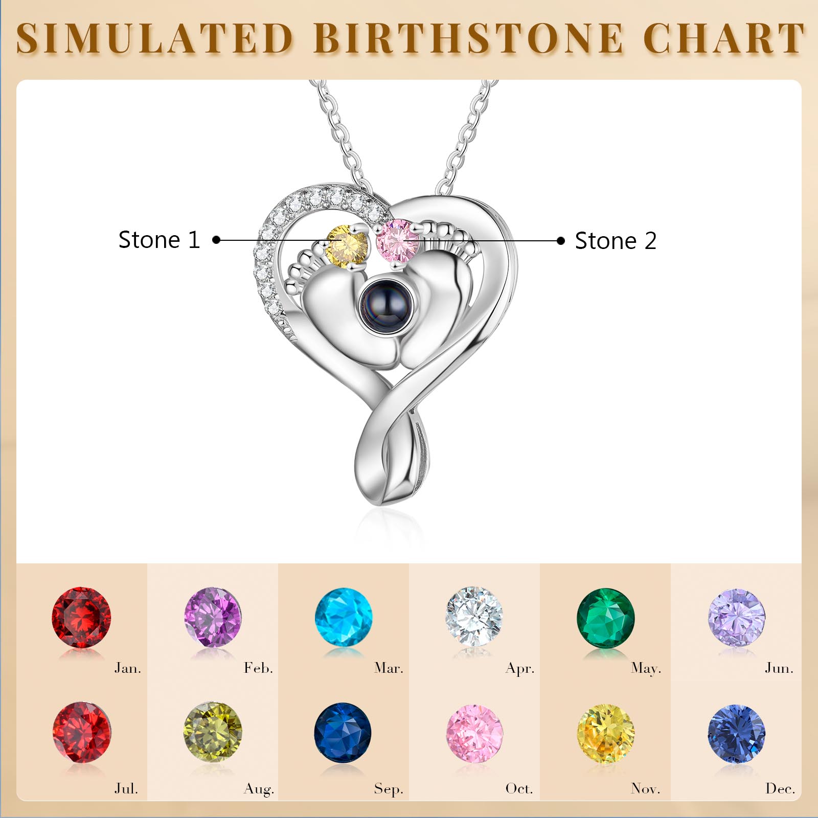 Personalized Baby Feet Projection Necklace Custom Photo Heart Necklace with Birthstone for Mother