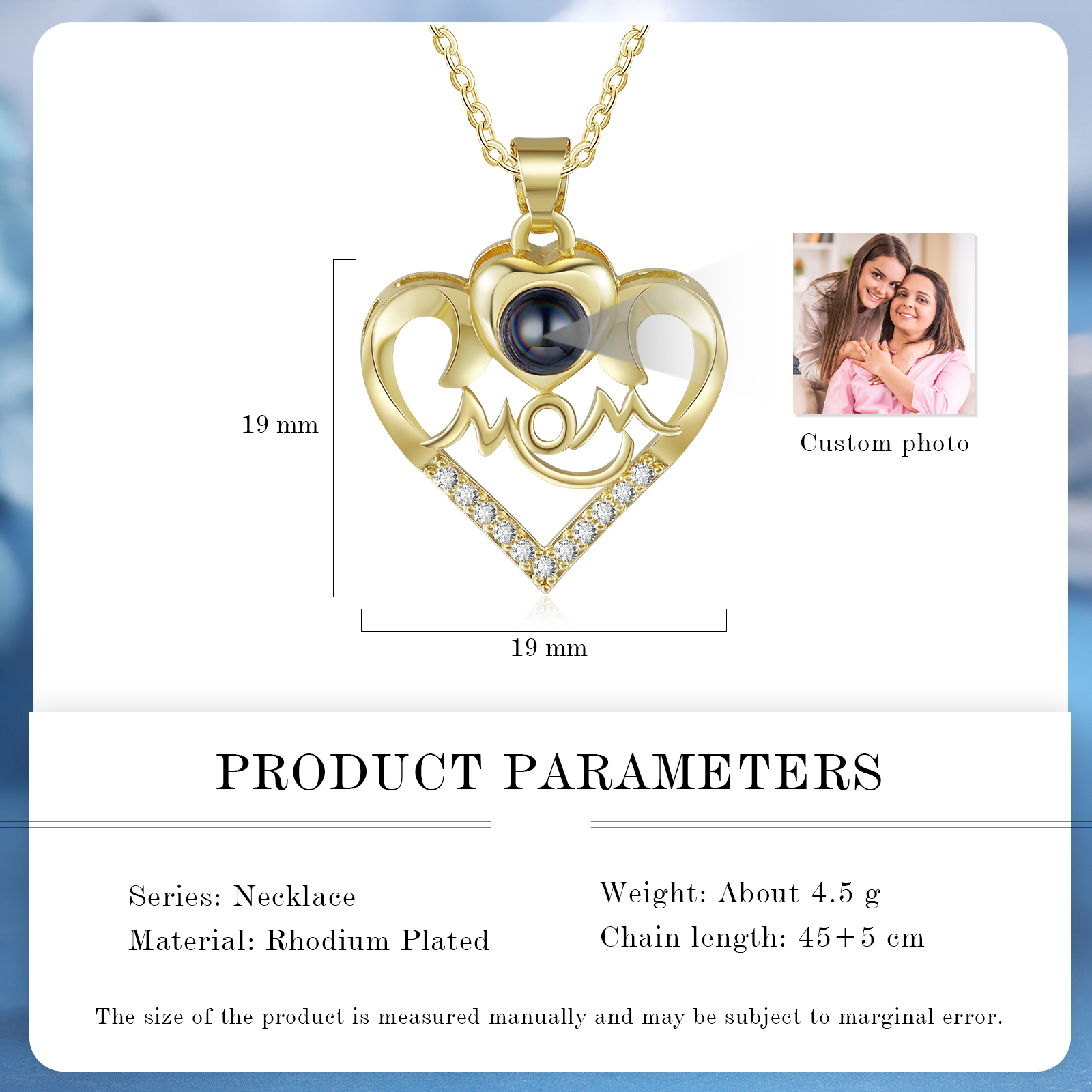 Mom Photo Necklace Personalized Projection Heart Necklace for Mother