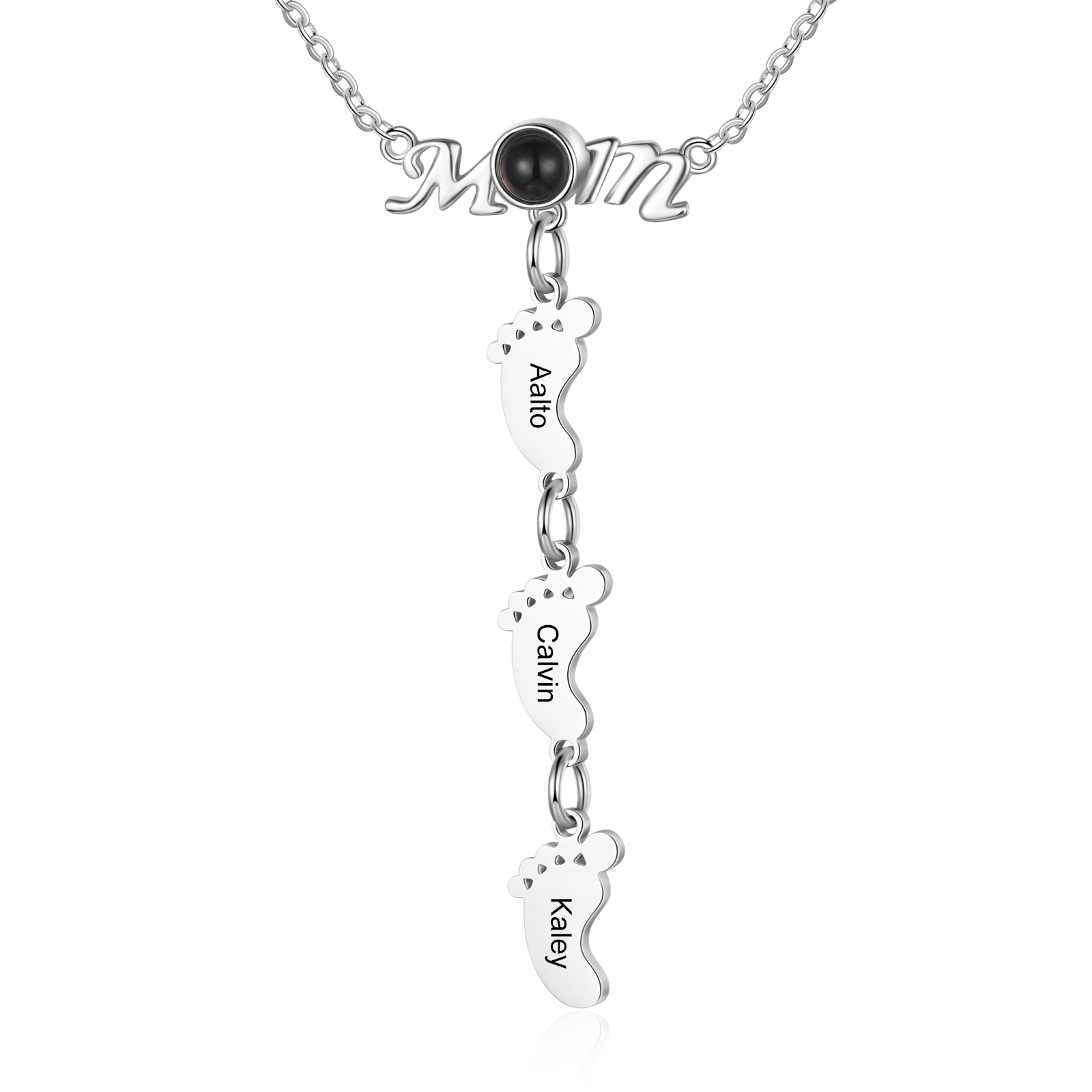 Mother Baby Feet Projection Necklace Engrave 3 Names Personalized Photo Necklace Creative Gifts