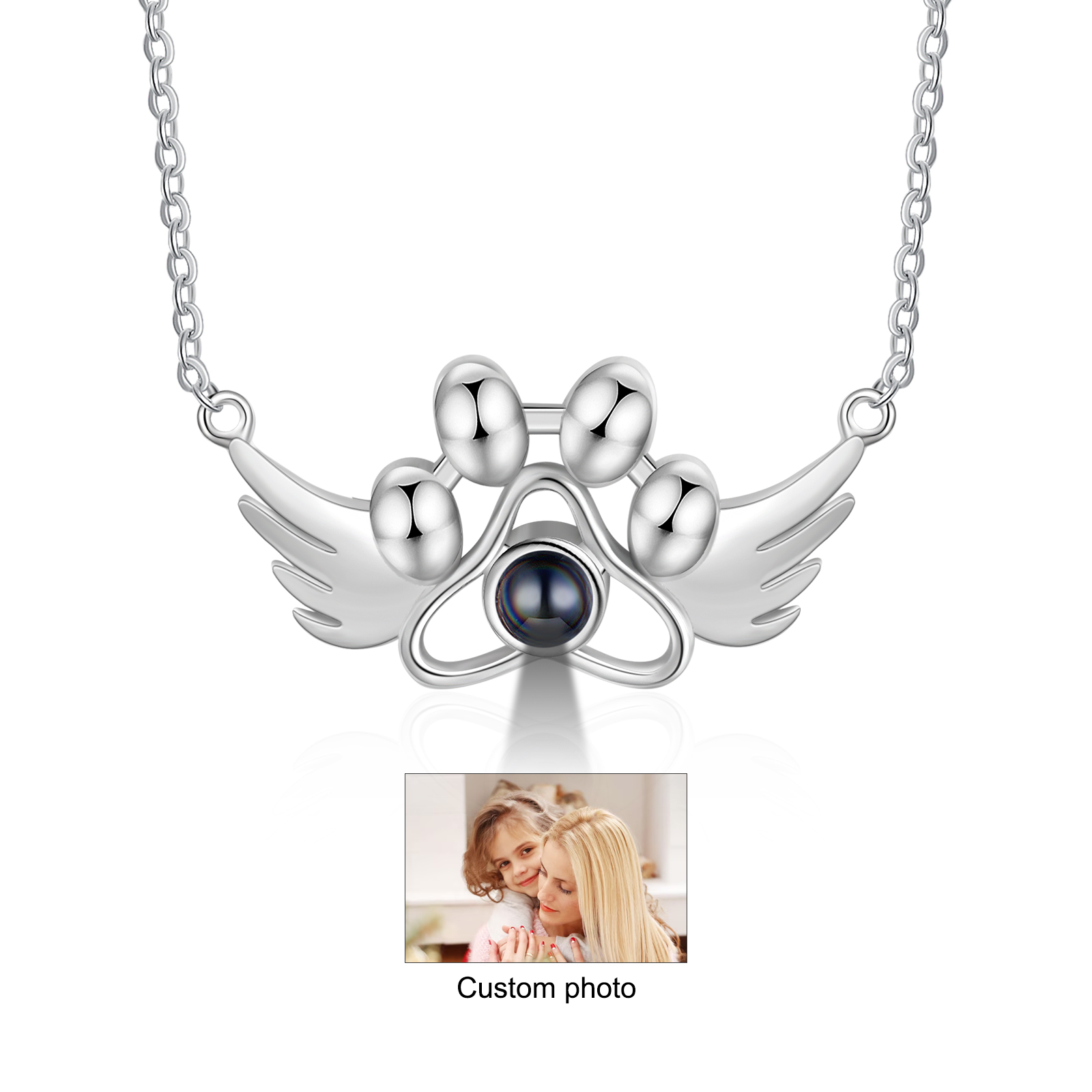 Personalized Angle Wings Projection Necklace Custom Photo Paw Print Necklace Creative Gift