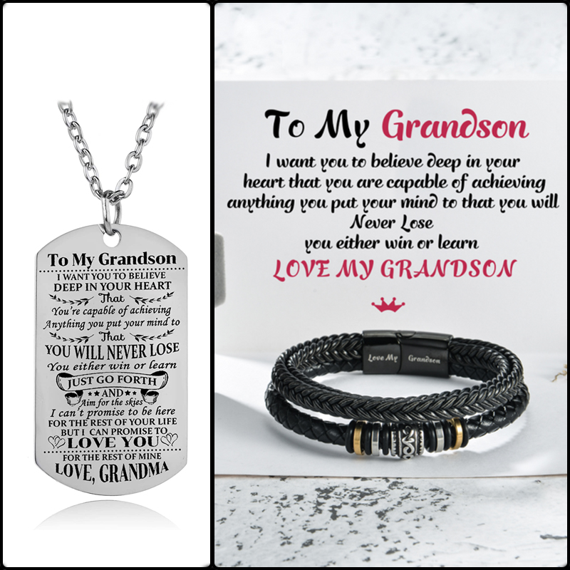 To My Grandson You Will Never Lose Necklace Bracelet Gift Set