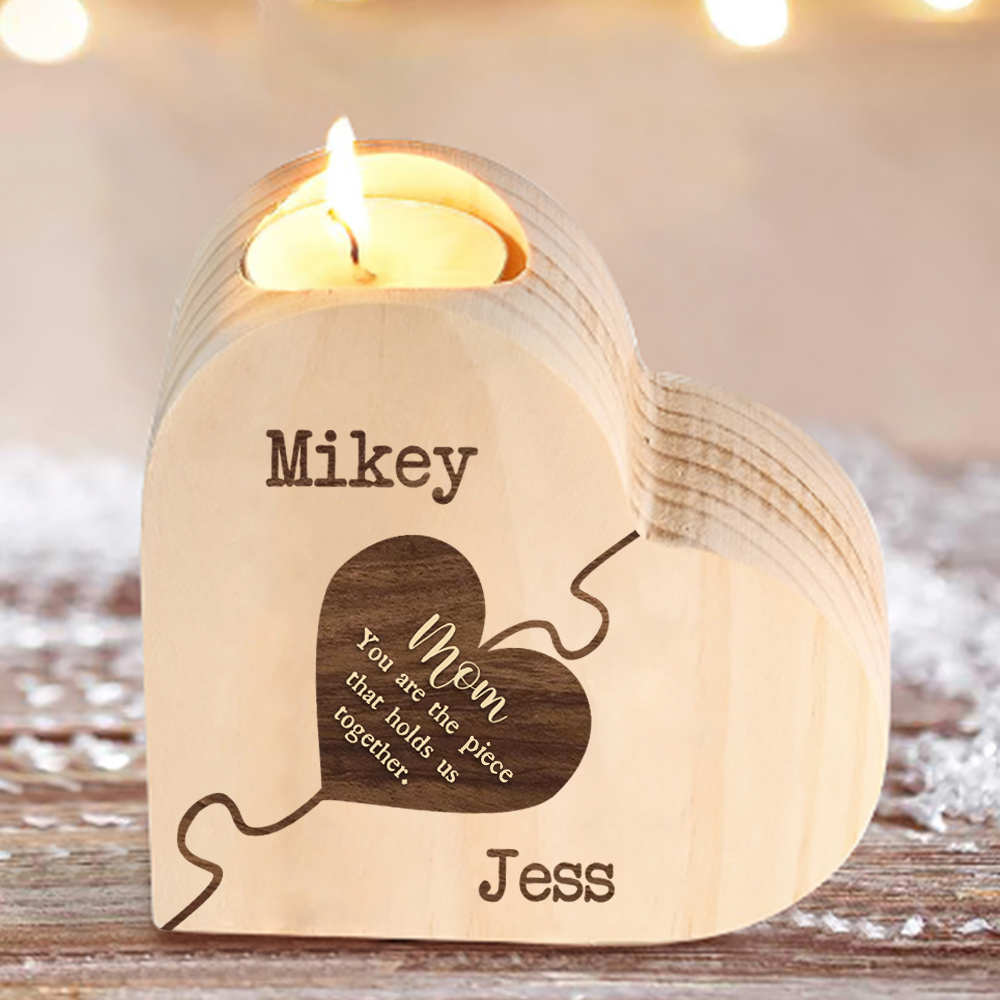To My Mom Personalized 2 Names Puzzle Candle Candle Holder Wooden Candlestick "You are the piece that holds us together"