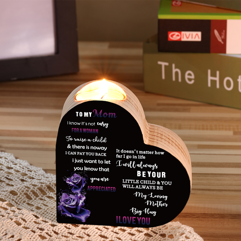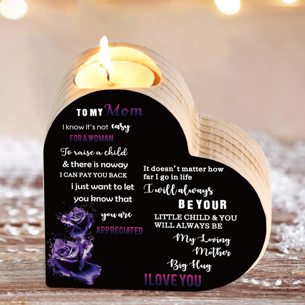 To My Mom Heart Candle Holder Wooden Candlestick Mothers Gifts-Thank you for the unconditional LOVE