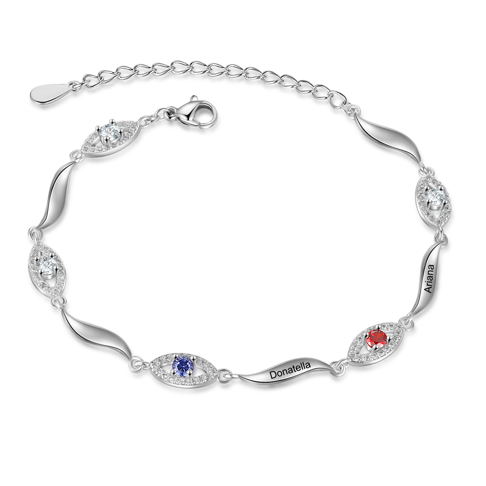 Evil Eye Birthstone Bracelet Custom 2 Names Dainty Bracelet for Her