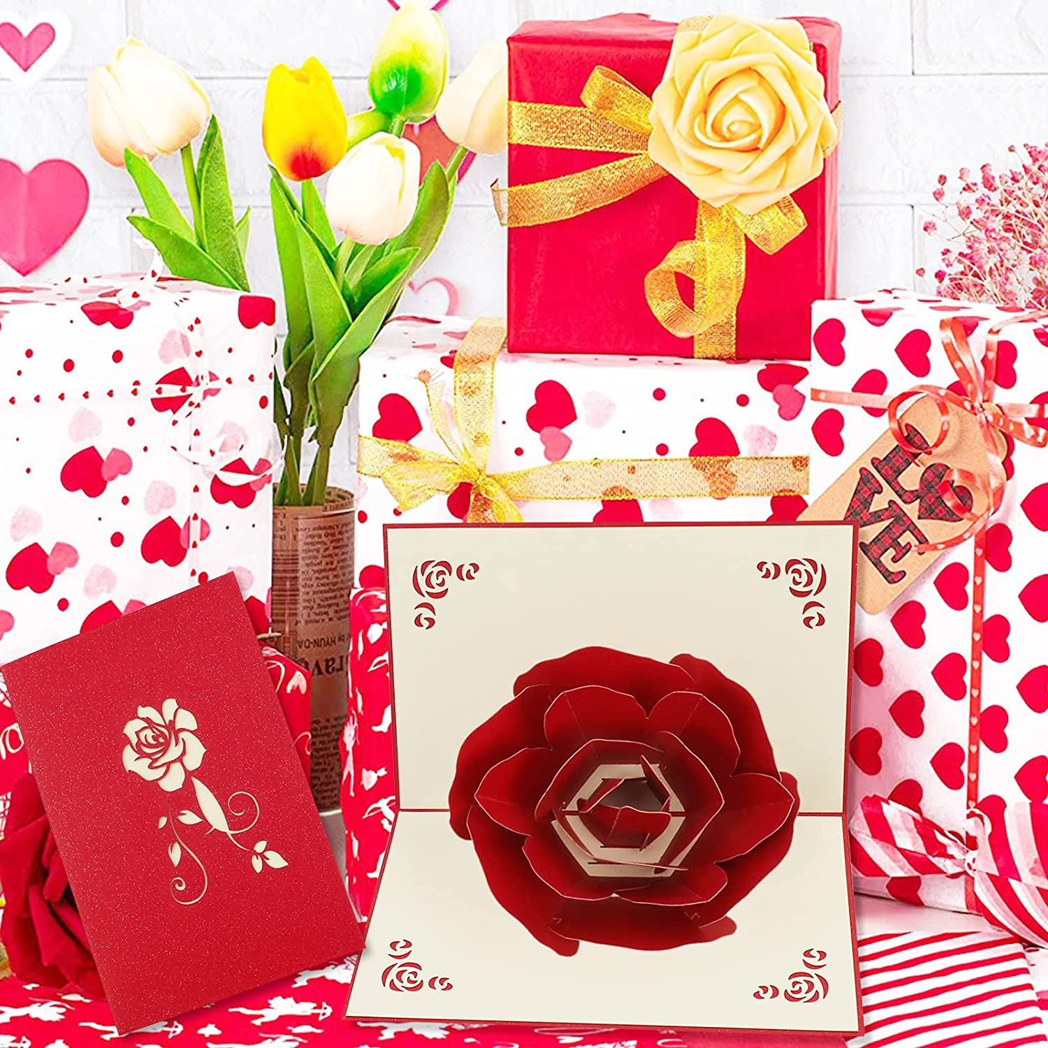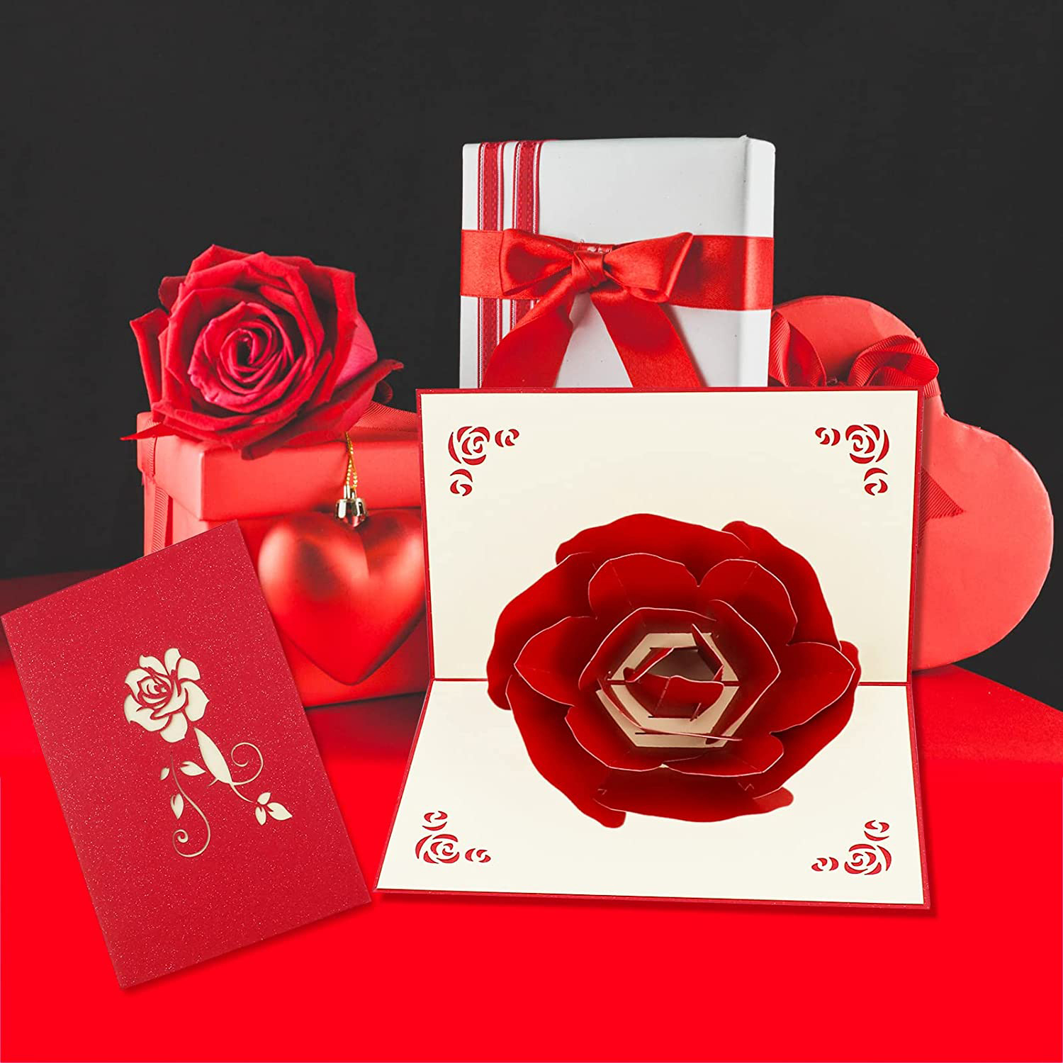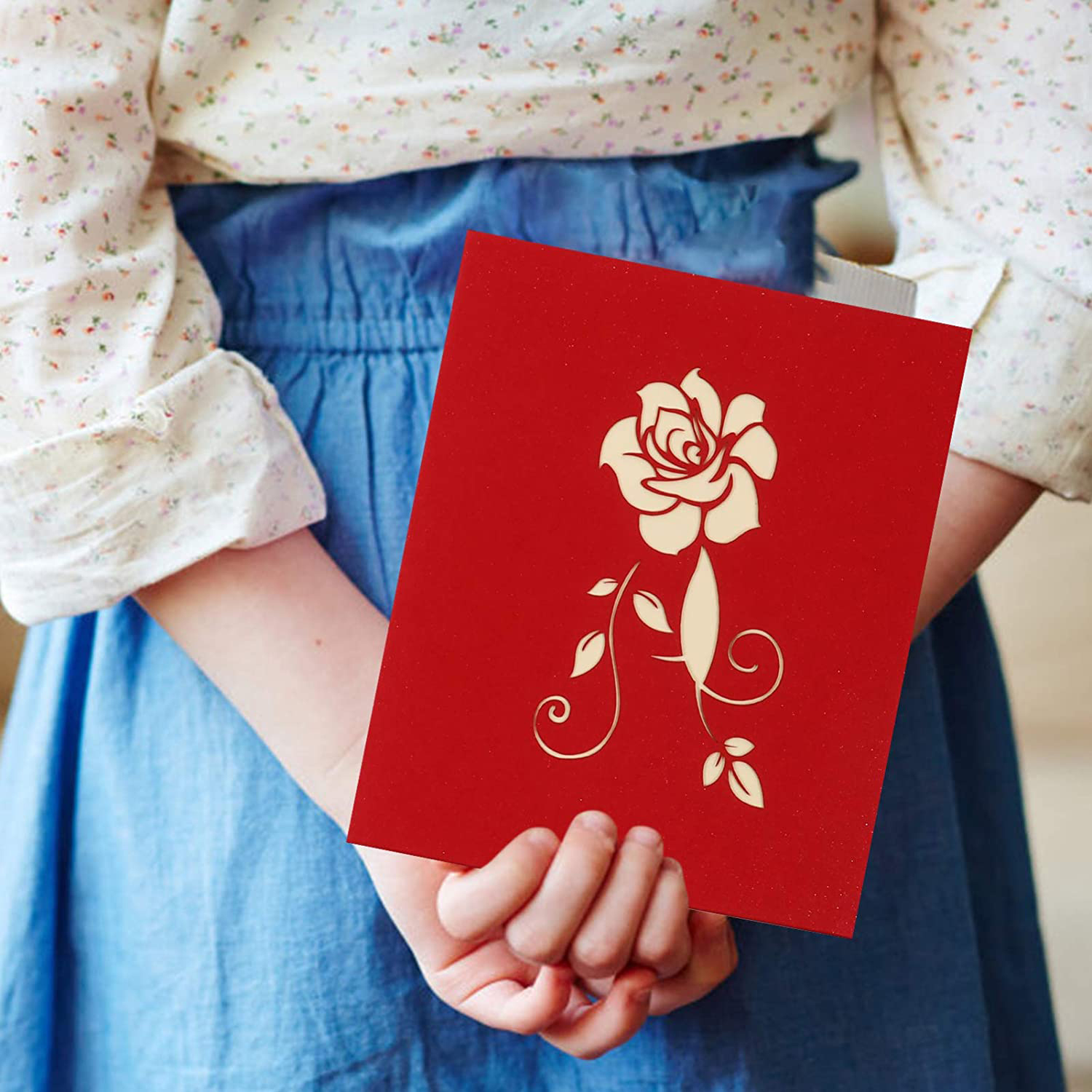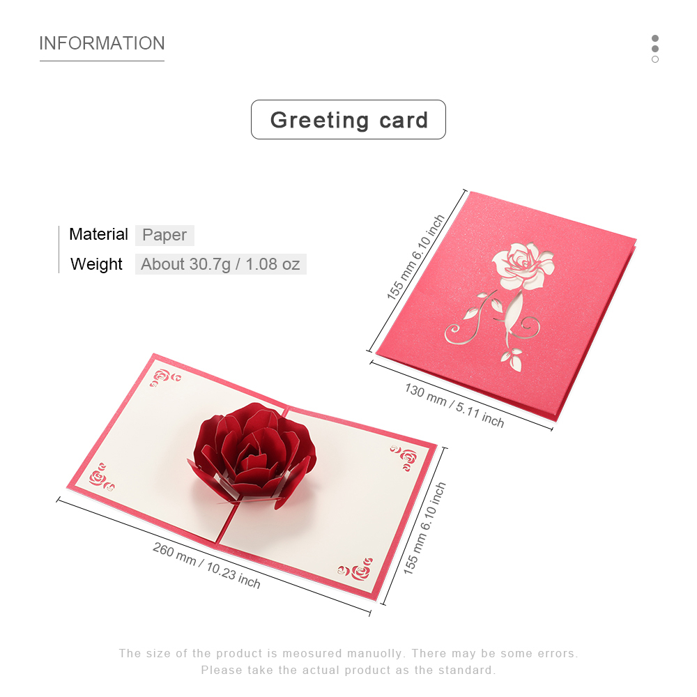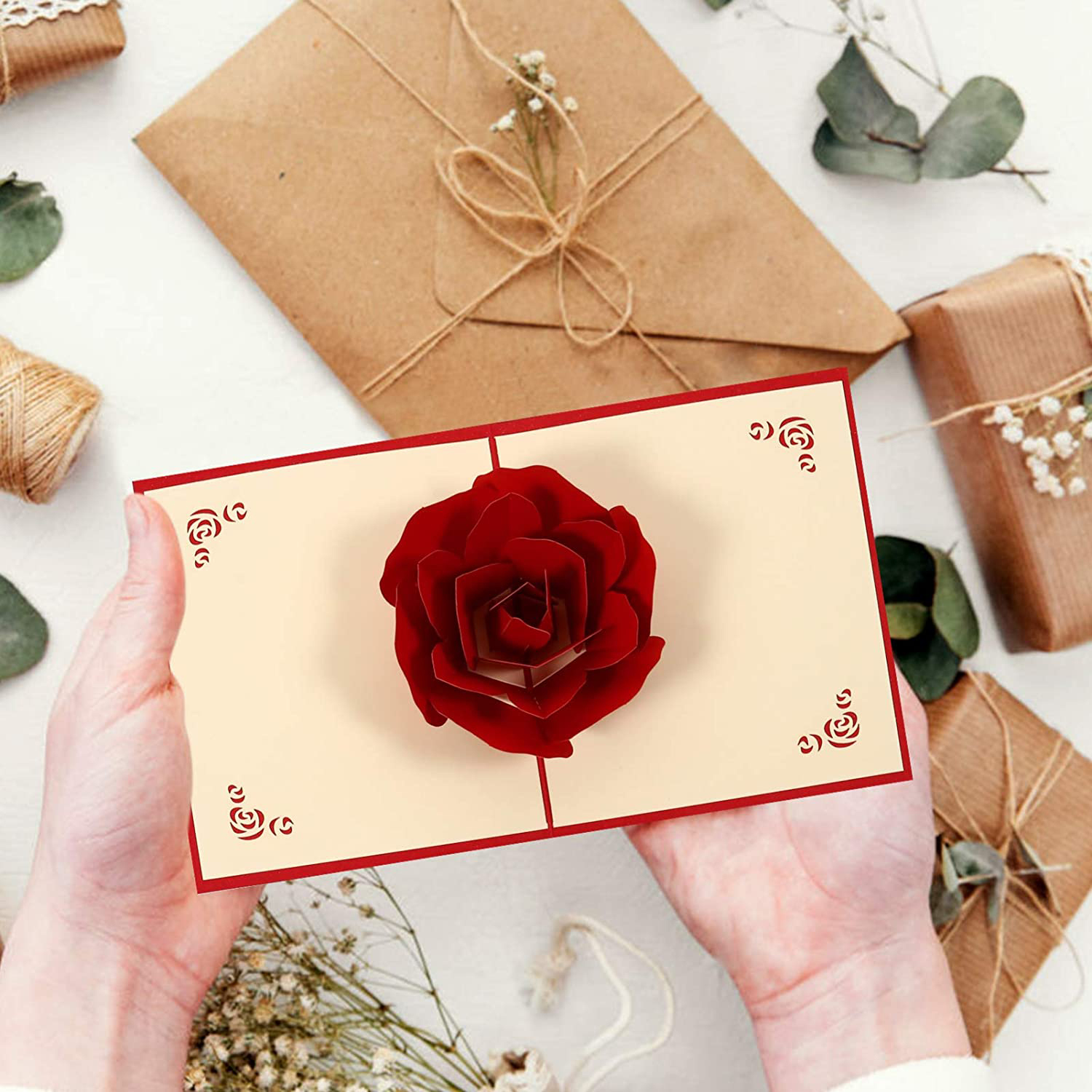 3D Pop-up Rose Greeting Cards Romantic Wedding Invitation Card for Her Him