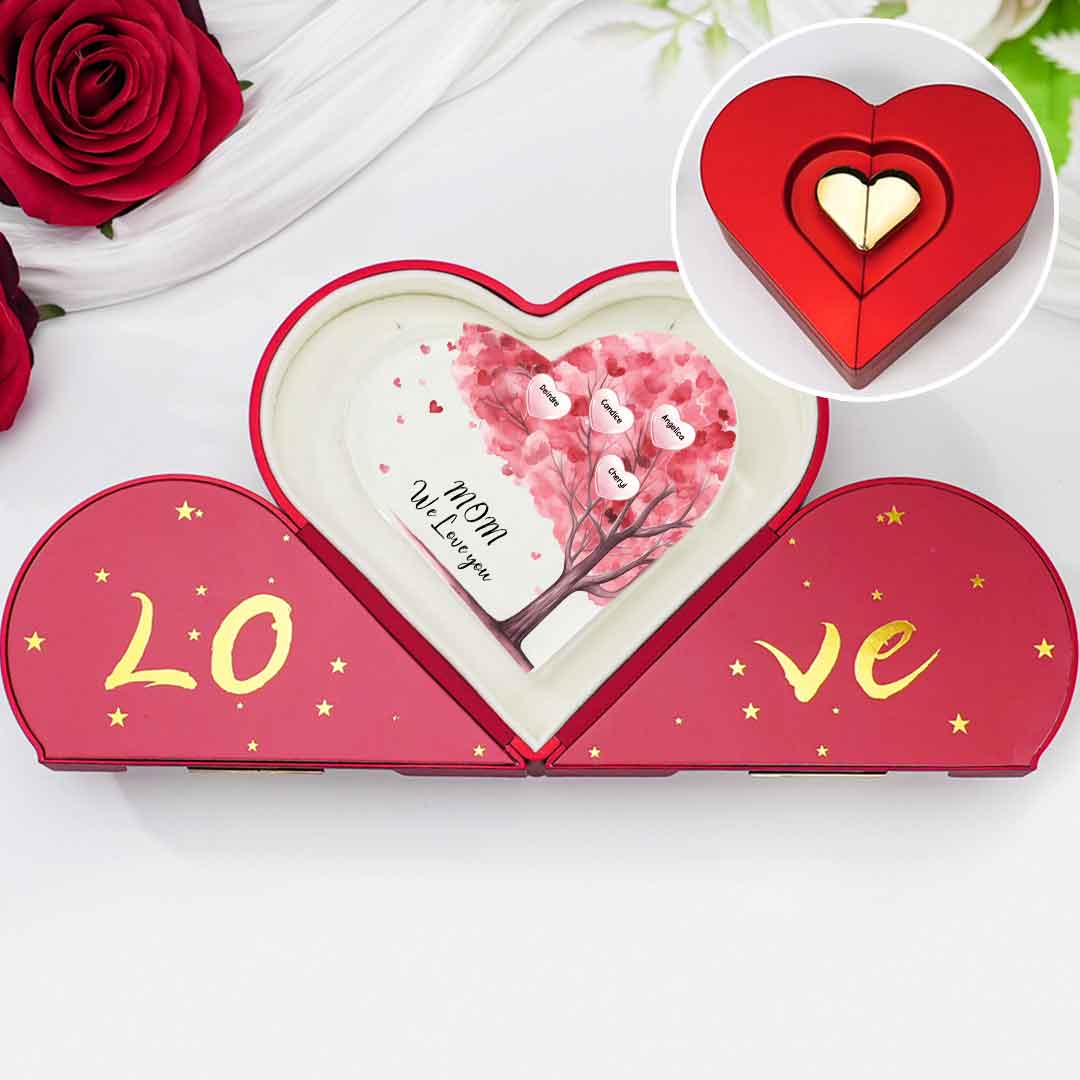 4 Names - Personalized Acrylic Heart Keepsake Custom Text Pink Tree Ornaments Gifts for Grandma/Mother