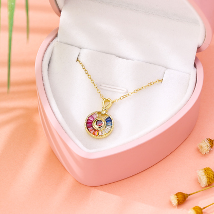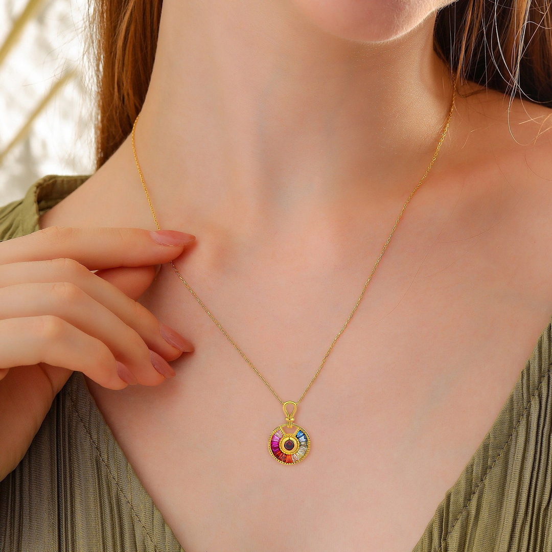 Colourful Stones S925 Sterling Silver Necklace Round Pendant Necklace Birthday Gift For Her