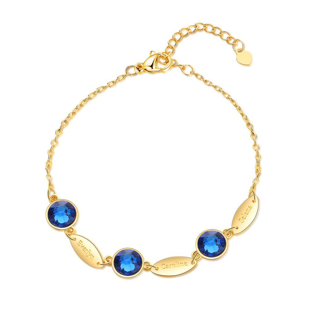 Custom Sapphire Birthstone Bracelet Engraved 3 Names Family Bracelet September Birthday Gifts for Her