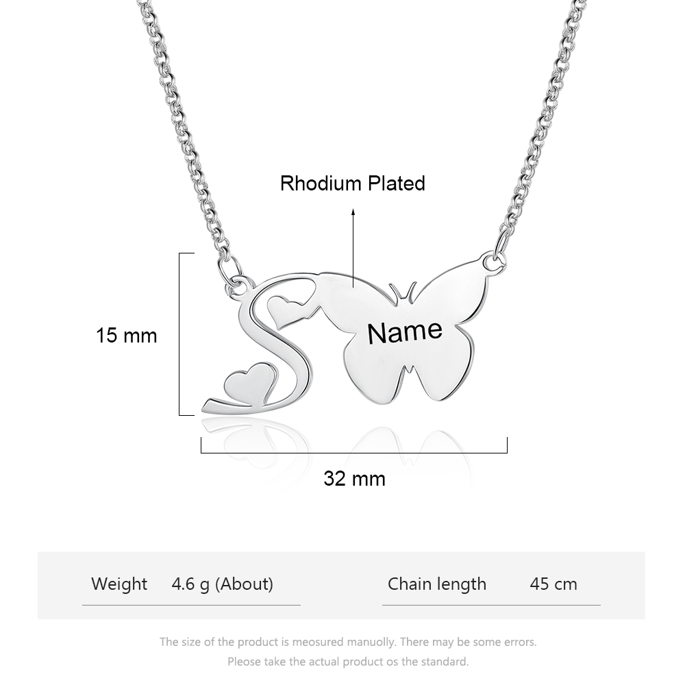 Custom Butterfly Name Necklace Letter Heart Necklace