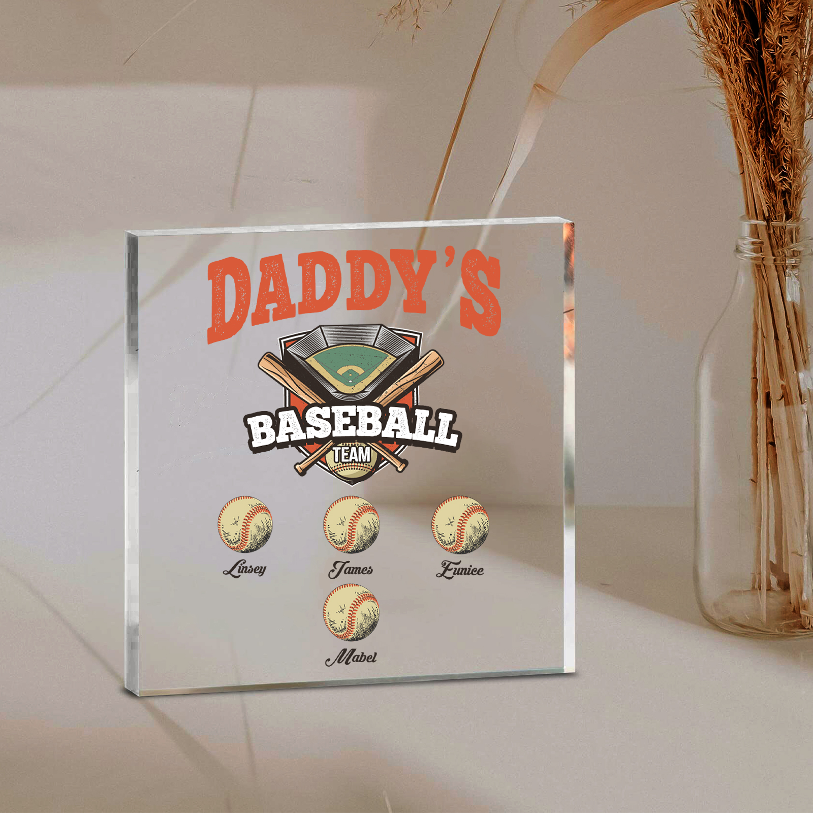Personalized 4 Names Acrylic Square Keepsake Baseball Family Rectangle Plaque Father's Day Gifts - Daddy's Baseball Team