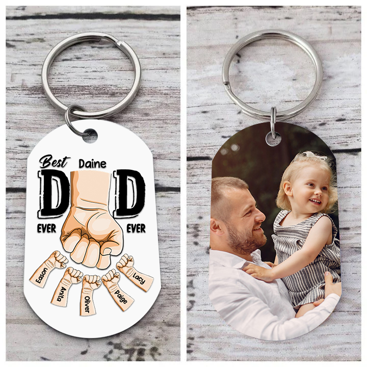Personalized 6 Names & 1 Photo Keychain Fist Bump Keychain Father's Day Gifts - Best Dad Ever