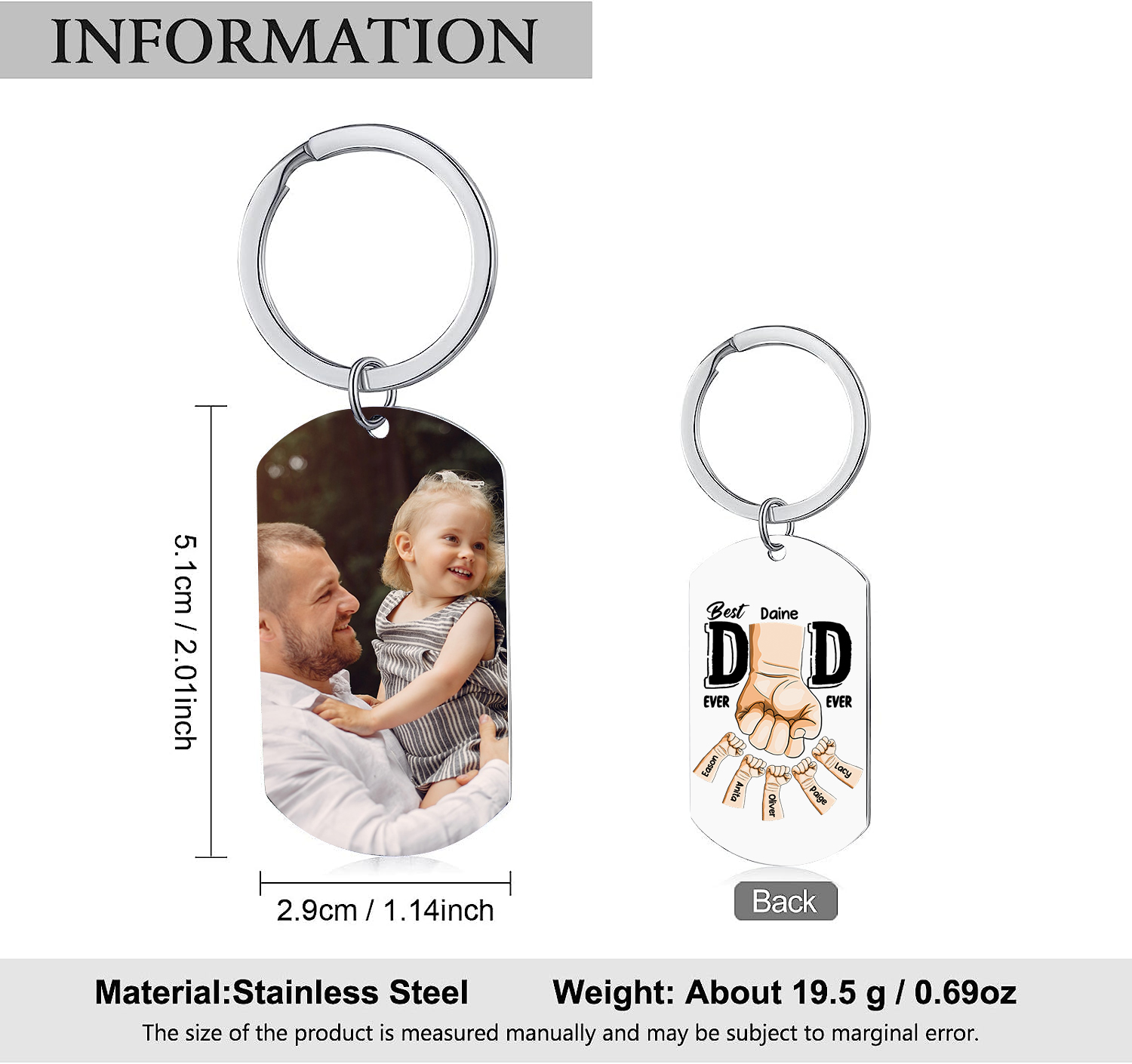 😊 Customize this meaningful keychain with the names of your loved ones, making it a unique and sentimental gift for dad.