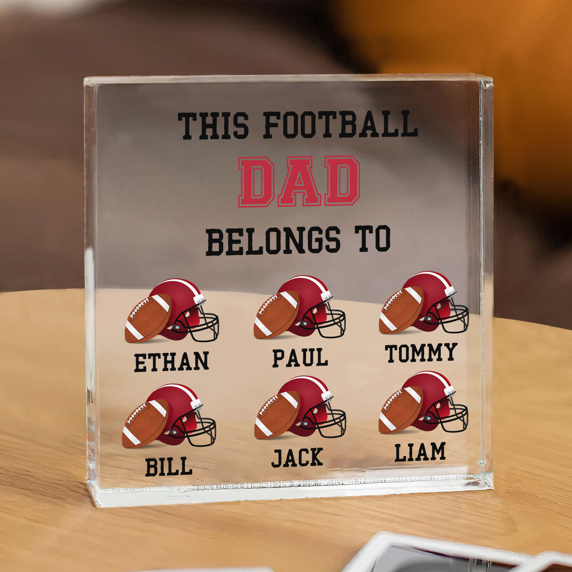 Personalized 6 Names Acrylic Square Keepsake Rectangle Plaque Father's Day Gifts - This Football Dad Belongs To