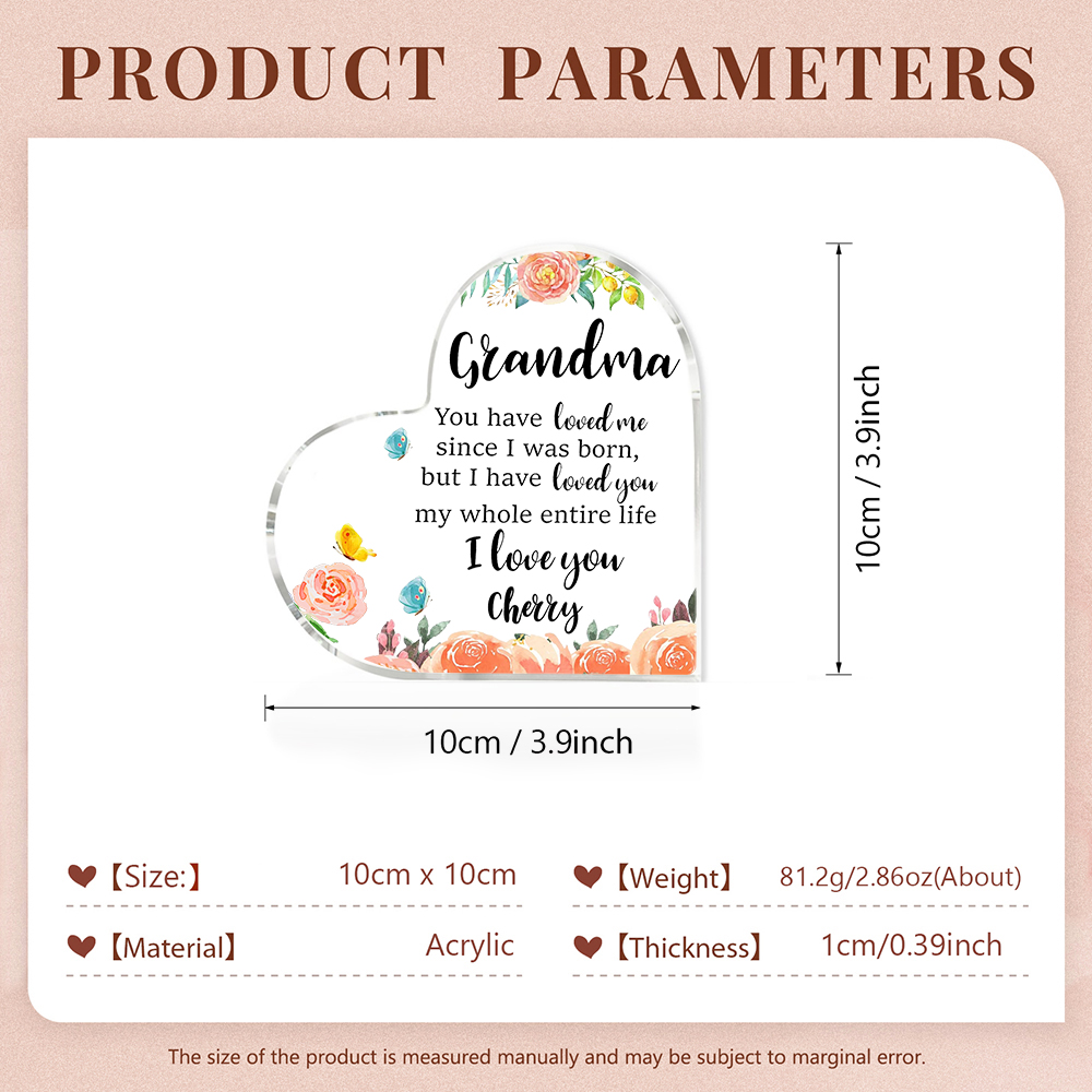 Personalized Acrylic Heart Keepsake with Name Heart Ornament Special Gift for Grandma