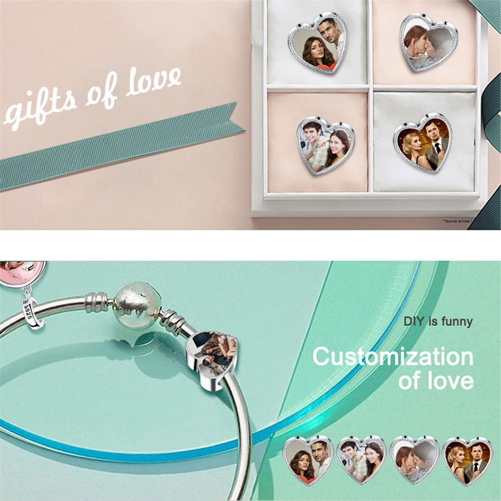 Personalized CZ Heart Photo Charms Sterling Silver