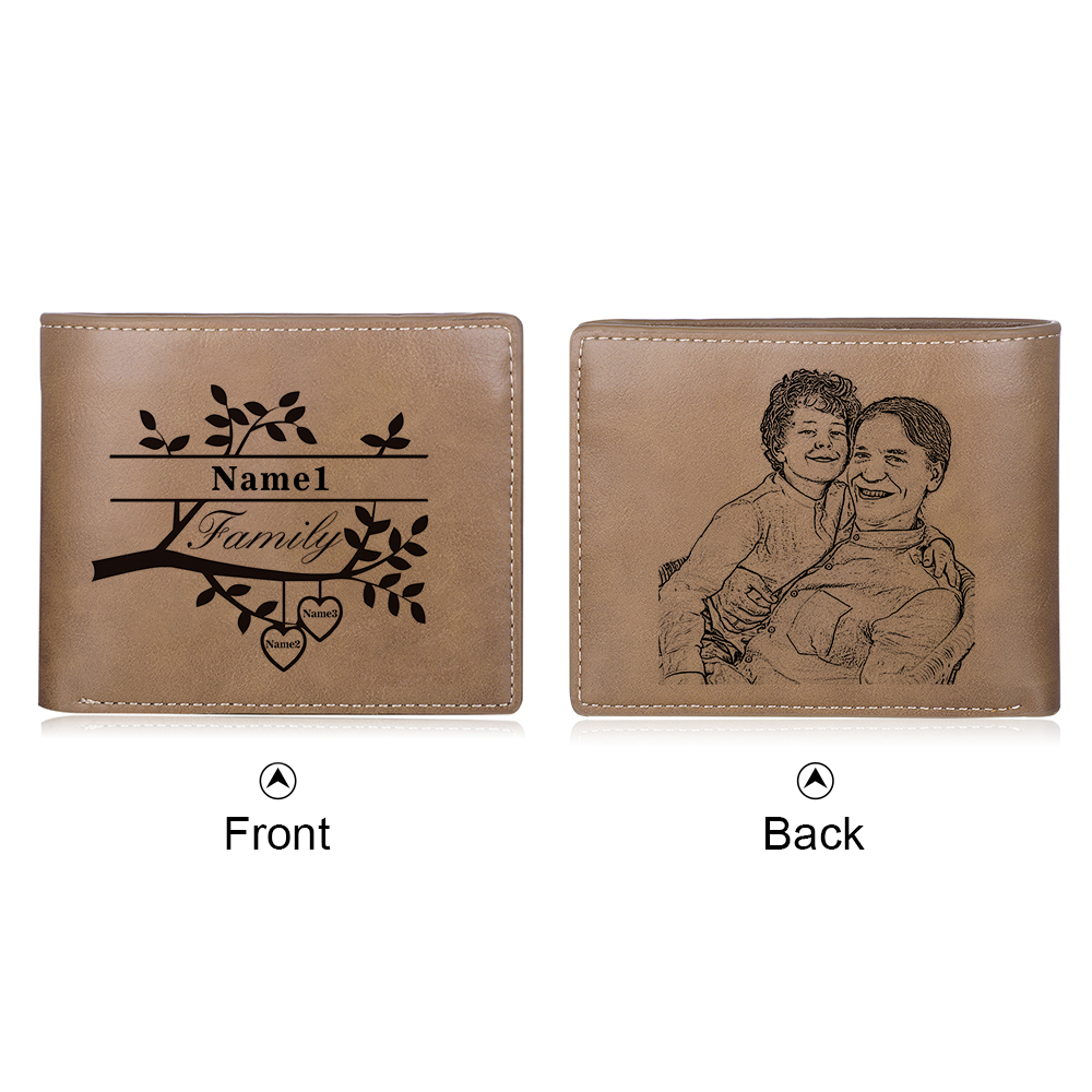 Personalized Family Tree Leather Wallets Customized 3 Names Men Photo Wallet Special Gift for Father Grandpa