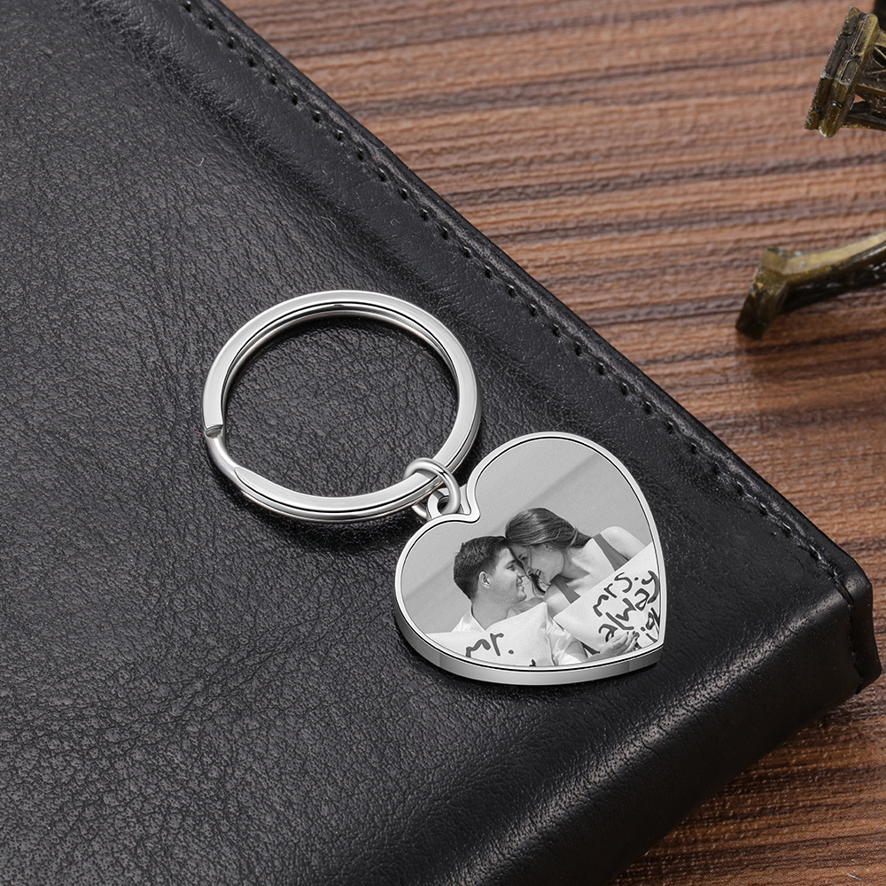 Personalized Heart Photo Keychain with Engraving Keychain