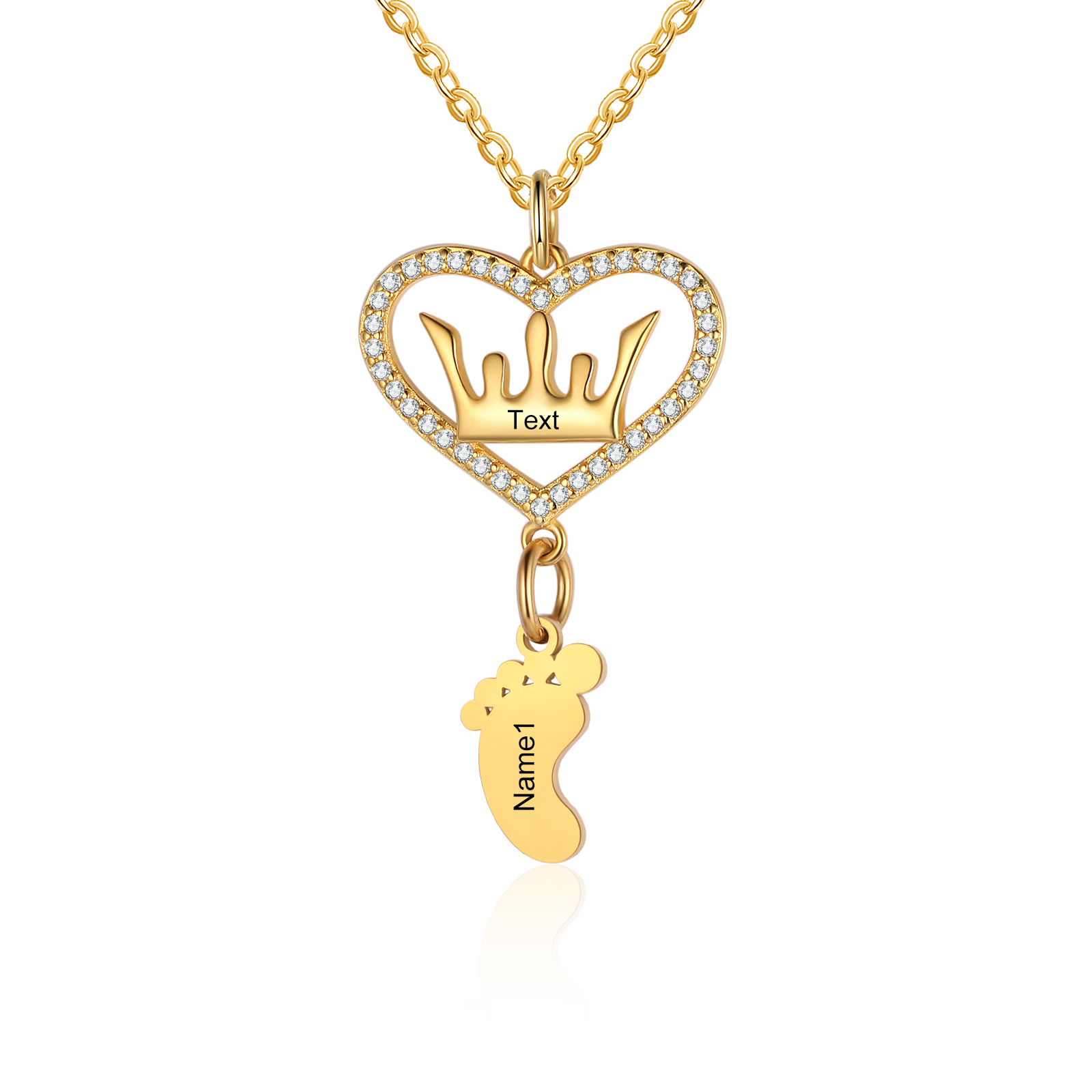 Personalized Mother Crown Necklace with 1 Baby Feet Pendants Engraved 1 Name