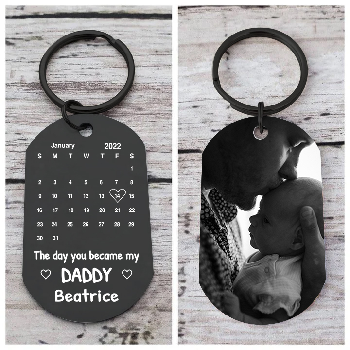 Personalized Name & Photo & Date Keychain Custom Calendar Keychain Father's Day Gift - The Day You Became My Daddy