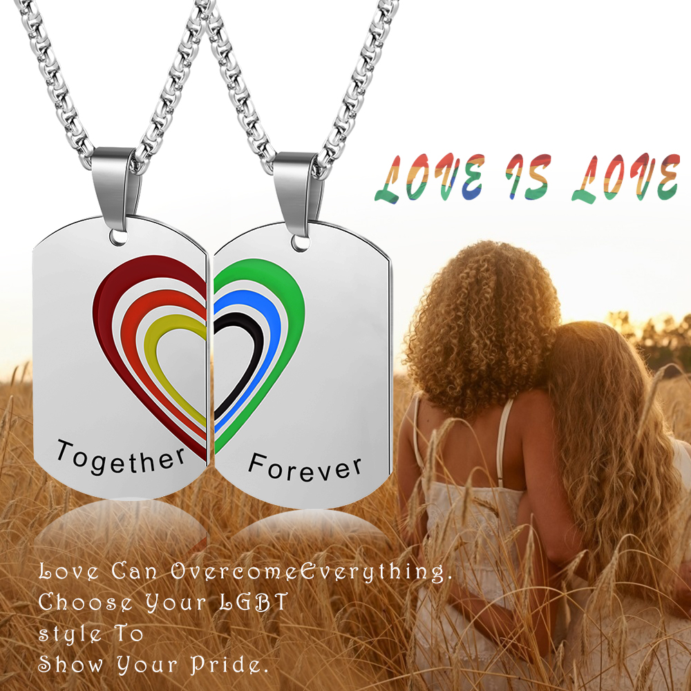 Personalized Rainbow Bar Heart Necklace Set LGBT Pride Gifts