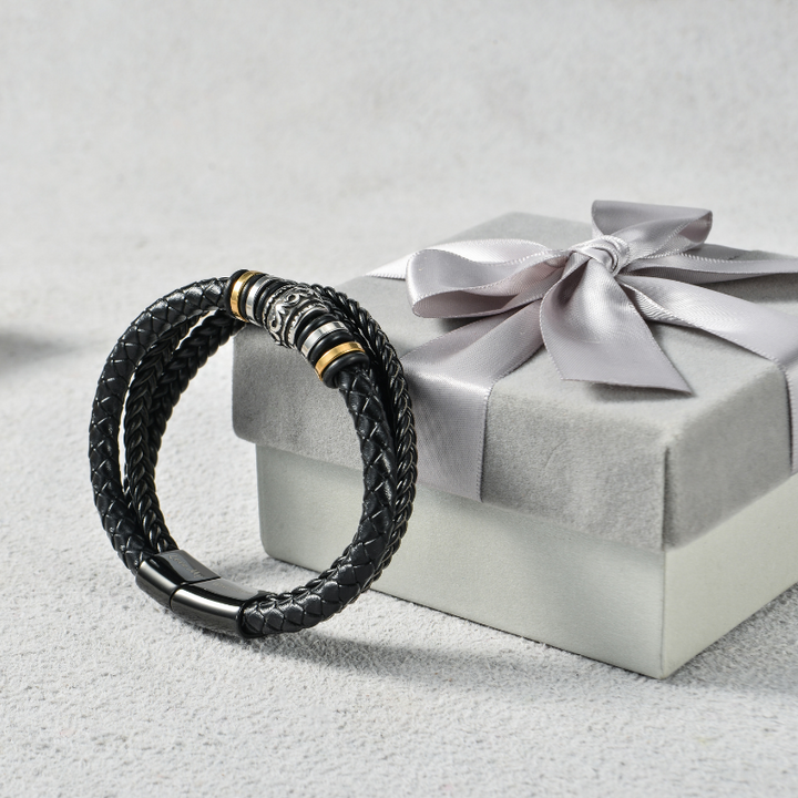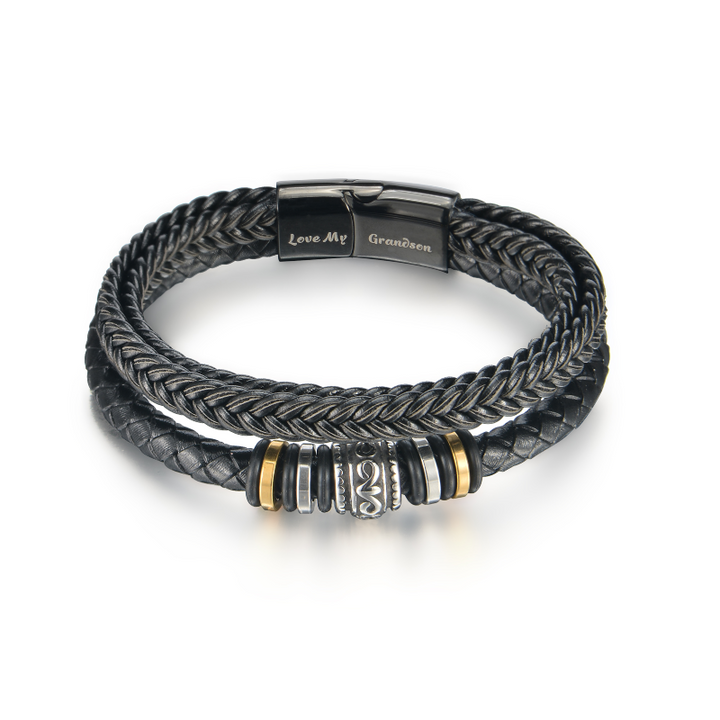 To My Grandson Braided Leather Bracelet "You Will Never Lose"