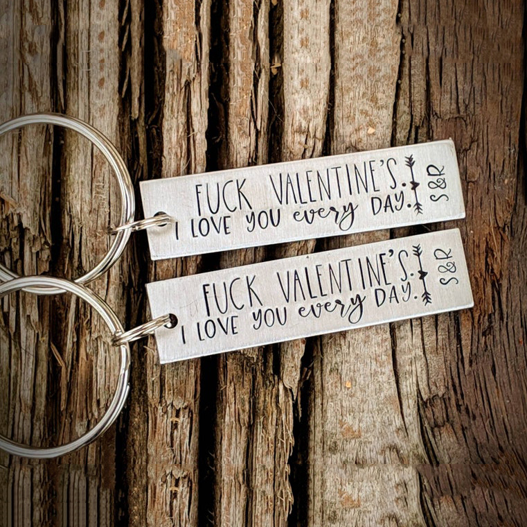 Valentine's Day Gift Personalized Initial Couple Keychain Set "I Love You Every Day"