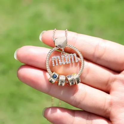 6 Names - Personalized Mum Circle Necklace Gift Set with Gift Box Custom Names & Birthstones Pendant Necklace Gift For Mum
