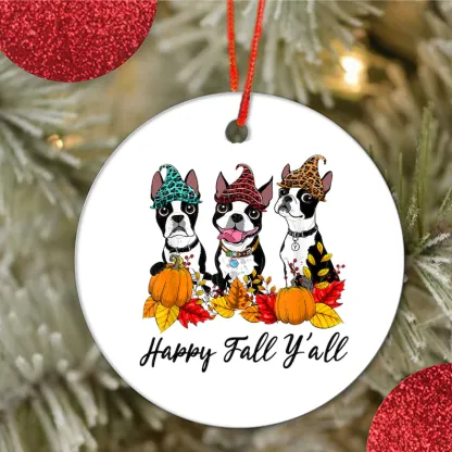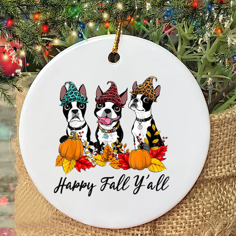 Boston Terrier Dog Ornament Happy Fall Y'all Halloween Home Decor