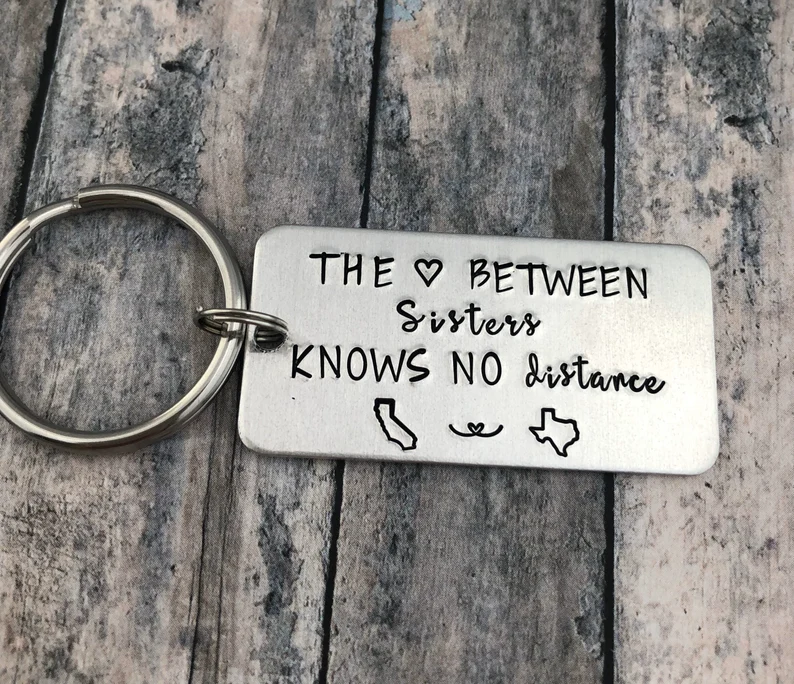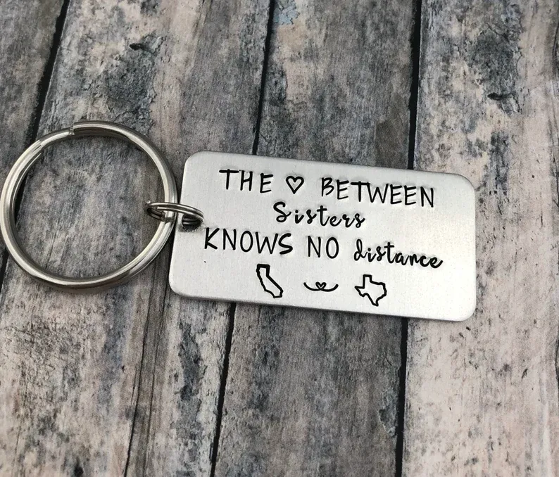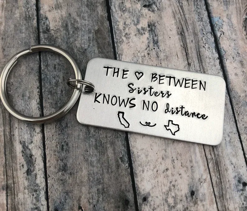 "The Love Between Us Knows No Distance" keychain is the gift idea for your loved ones for their Birthday, Graduation, Anniversary, Valentine's Day, Christmas, Thanksgiving, etc.! The keychain will be with them side by side, wherever they go so they can feel that you are always there for them. It is useful and practical but also is able to convey the meaning of your love.