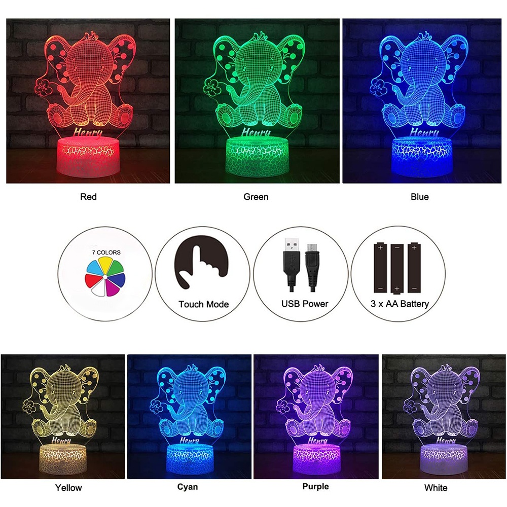 Personalized Elephant Night Light Custom Name Changeable Color Lamp