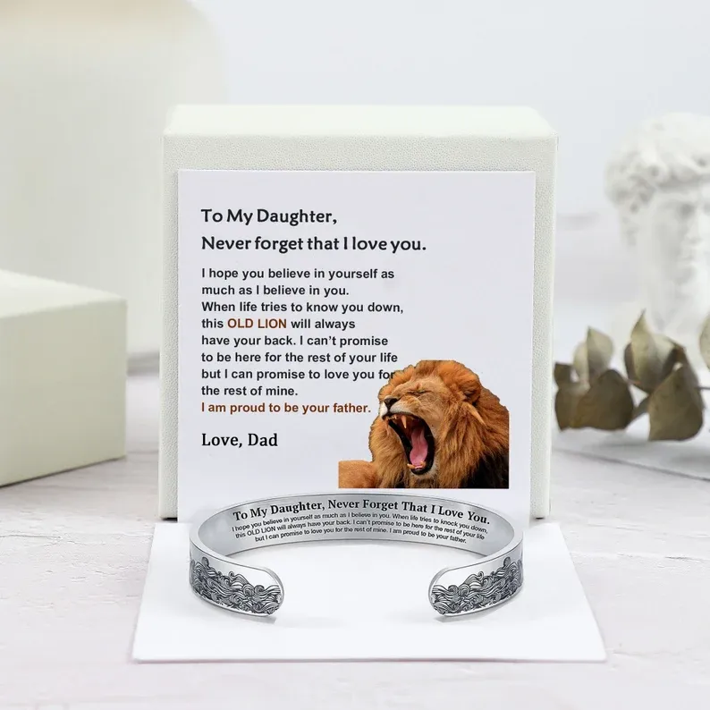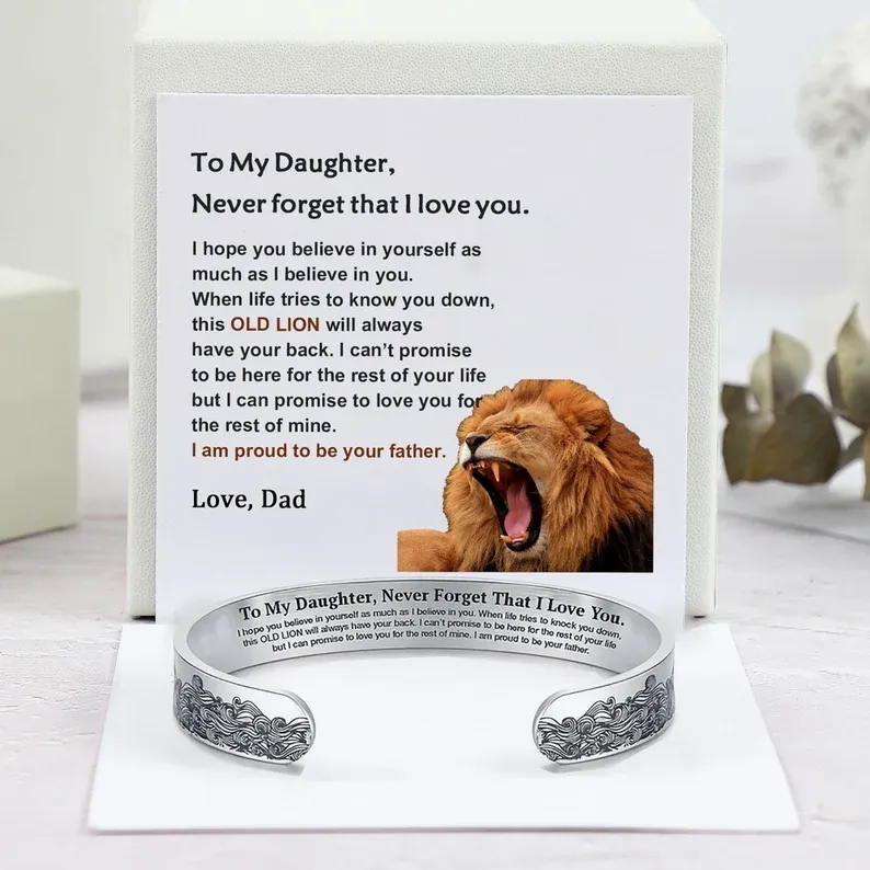 To Daughter- Wave Cuff Bangle Bracelet with Gift Box "I am proud to be your father"