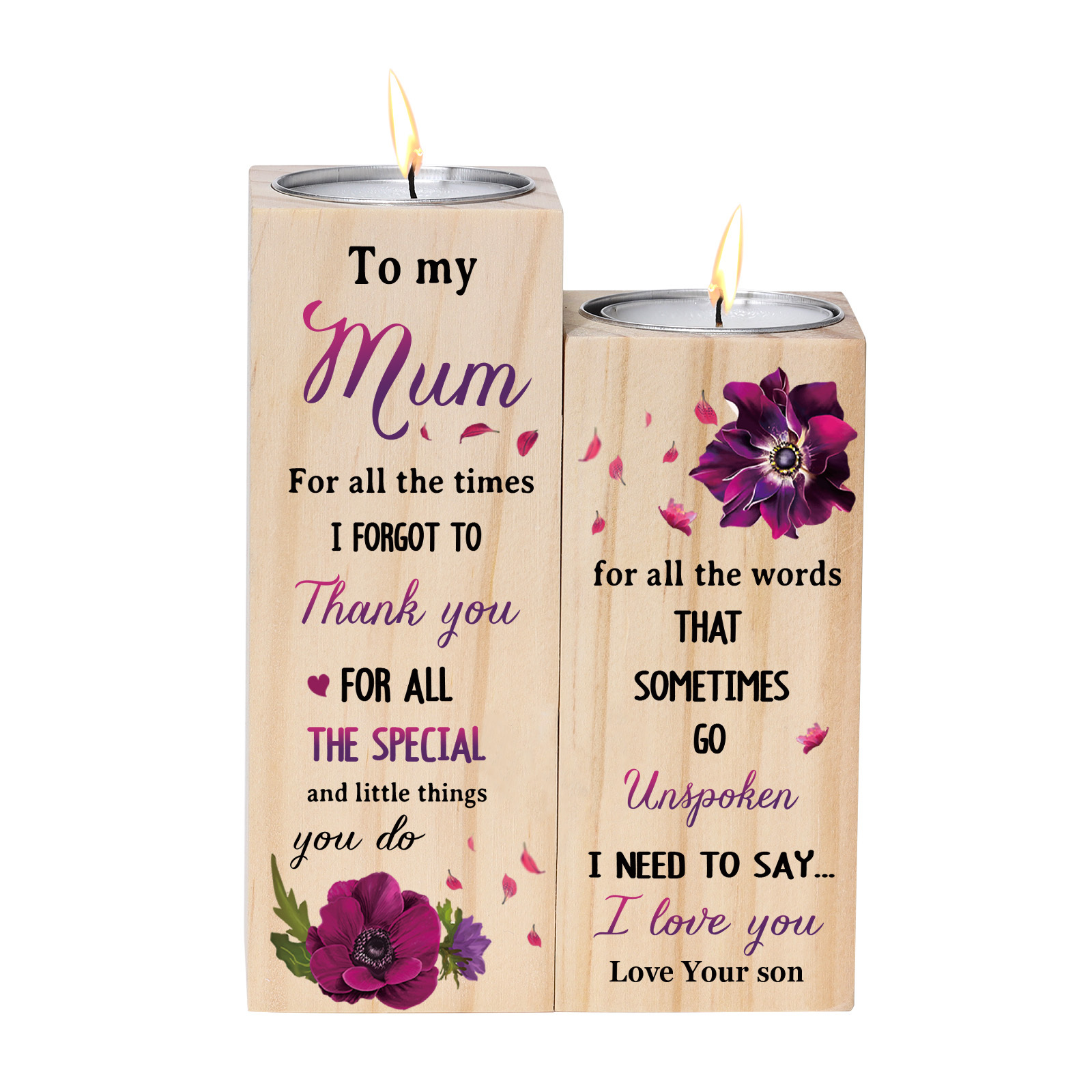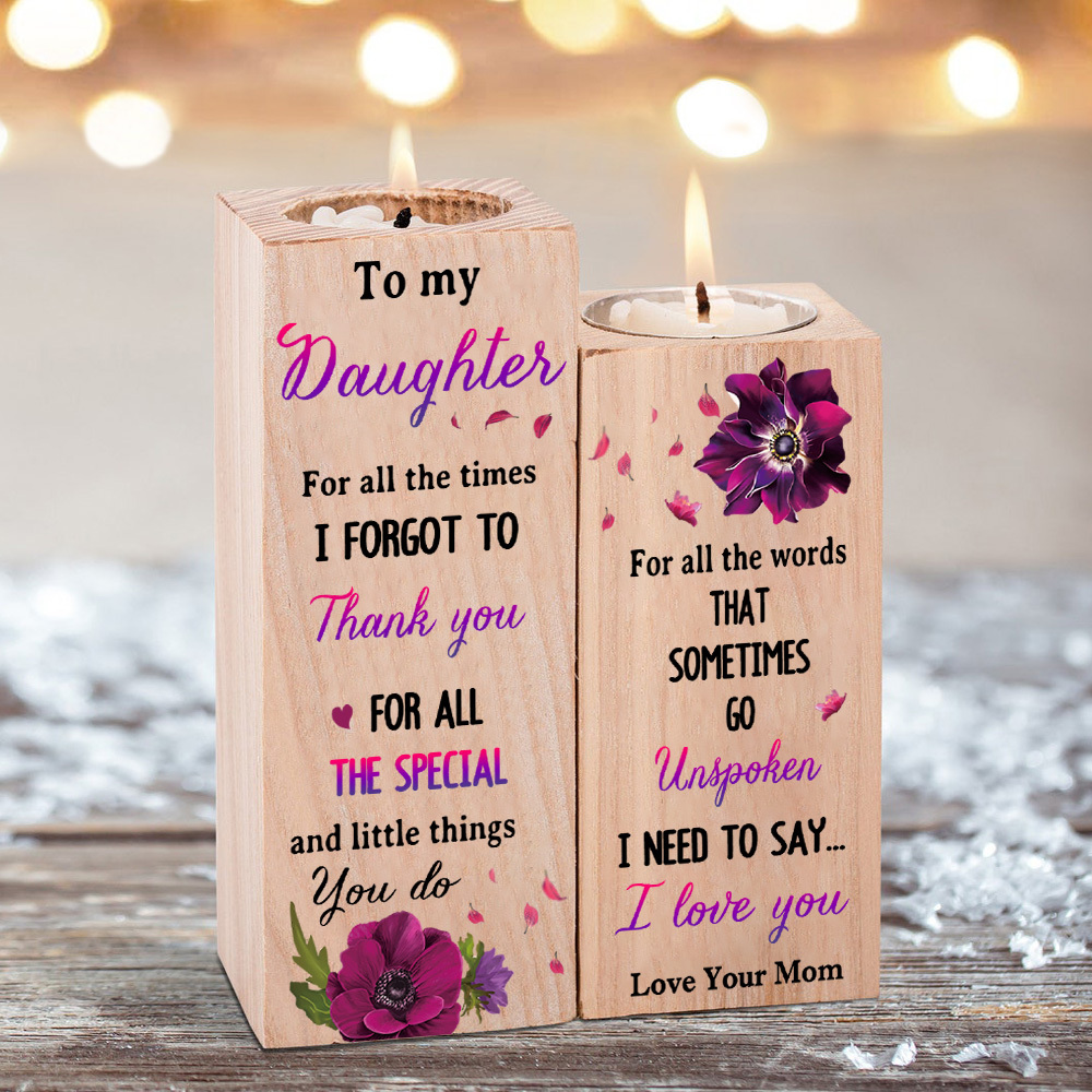 To My Mum/Mom/Mam/Grandma Violet Candle Holder To My Daughter/Granddaughter Wooden Candlestick - For All The Times I Forgot To Thank You