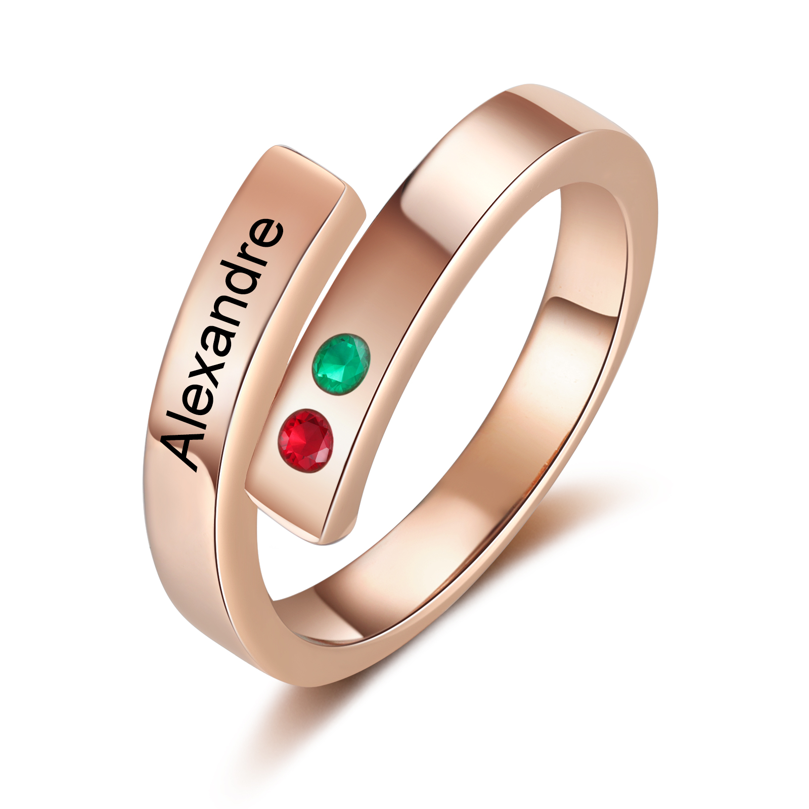 Personalized Women's Ring Customized 2 Birthstones Open Ring Birthday Gift for Women Girls